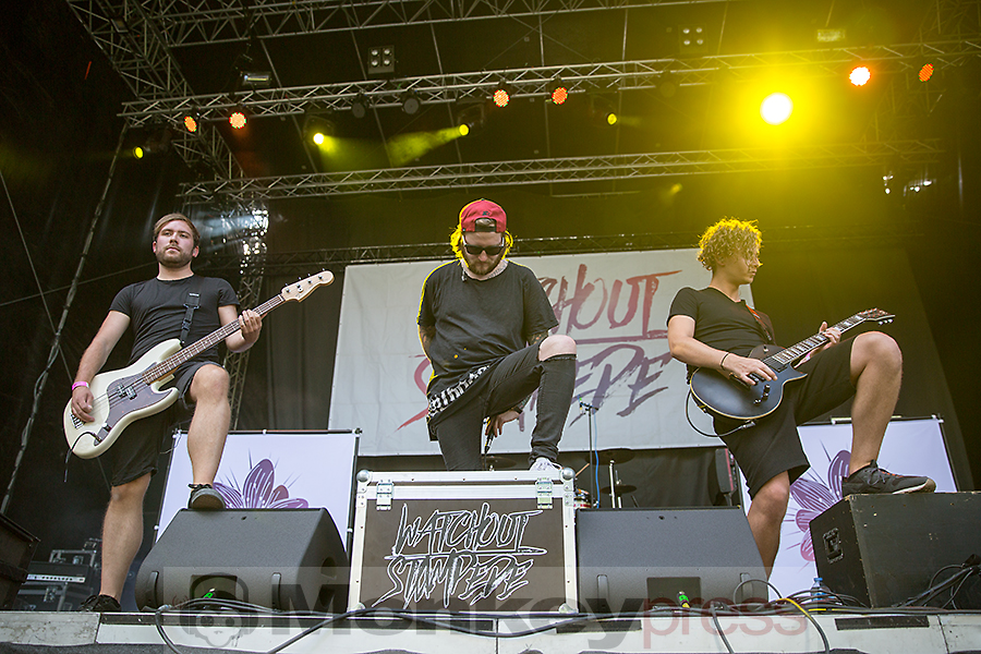 Geil, geiler geht es dann bei Watch Out Stampede ab. Die Bremer Musiker liefern echt gelungenen Post Hardcore ab. Heftige Shouts treffen auf glasklare Refrains. Ein Stil, wie man ihn ähnlich von Emil Bulls kennt. Die noch recht junge Band ist 2011 gegründet worden und stand auch schon auf Wacken Open Air 2016 im Bullhead-City-Circus-Zelt. Derzeit haben sie ihr aktuelles Album Svtvnic im Gepäck. Vielversprechender Nachwuchs in ihrem Genre. Gute Laune Mucke, die auch die Chillout-Phase der dazu gestoßenen Zuhörer beendet.