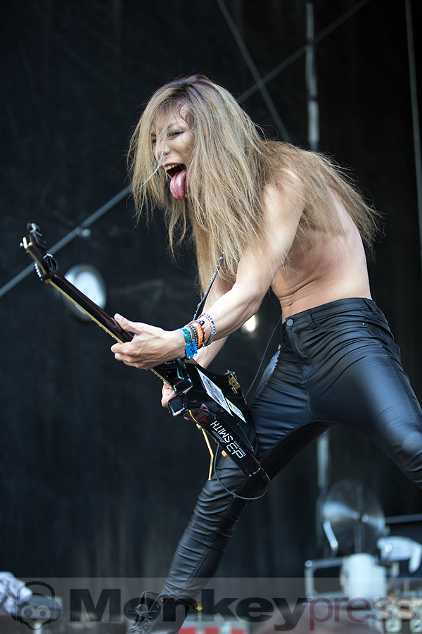 Tag zwei des Turock O.A. startet mit super Wetter. Auch die Anzahl der Zuschauer vervielfachte sich deutlich zum Vortag. Zudem kommt noch eine große Anzahl an Animationswespen dazu, welche bei unbewegten Metalheads dafür sorgen, dass hier auch jeder zu Bewegung kommt. Und wer nicht ordentlich mitmacht wird dann auch mal gestochen. Zu noch früher Stunde starten die Bands Misanthrop Monarch, Backfired Hate und Messerschmitt. Entweder liegt es am Brumschädel vom Vortag, der Mittagssonne oder kleinen technischen Pannen, dass das Aufwärmprogramm doch sehr schleppend vorankommt.
