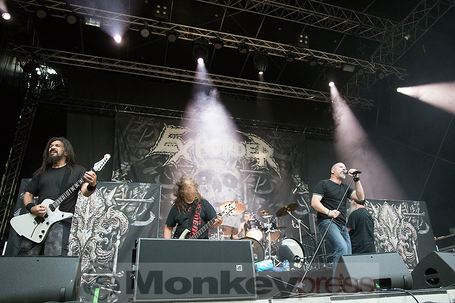 Vom Death- zum Trash-Metal zurück. Oder Bühne frei für Exhorder aus New Orleans. Die Band ist schon seit den 80ern unterwegs und gilt als Erfinder des Groove orientierten Trash-Metal. Die Stimmung ist nach den letzten Bands auf dem Höhepunkt und Bangen, Pogo sowie Crowdsurfing stehen auf dem Programm. Da bleiben Blessuren nicht aus und auch der Krankenwagen kommt das ein oder andere Mal zum Einsatz. Dabei ist das Festival noch gar nicht am Ende angekommen.