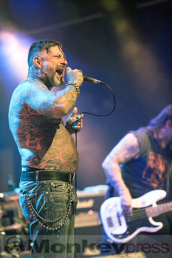 Nach den abgefeierten V8’s und kurzer Umbauphase betreten Rose Tattoo, bestehend aus Dai Pritchard an der Slide, dem ehemaligen AC/DC-Bassisten Mark Evans (Dieser Mann war mit Bon Scott bei AC/DC High Voltage, Dirty Deeds und Let there be Rock/ Wahnsinn. Sorry;-)), Bob Spencer (G) und dem Drummer Jackie Barnes die Bühne. Als daraufhin ein gut gelaunter Gary „Angry“ Anderson von der linken Seite langsam in den Mittelpunkt schreitet, gibt es beim Publikum kein Halten mehr und die Rock’n Roll Party beginnt. Wer Angry nicht aus der Musikwelt kennt, erinnert sich vielleicht an seine Rolle als Ironbar neben Tina Turner in Mad Max 3.