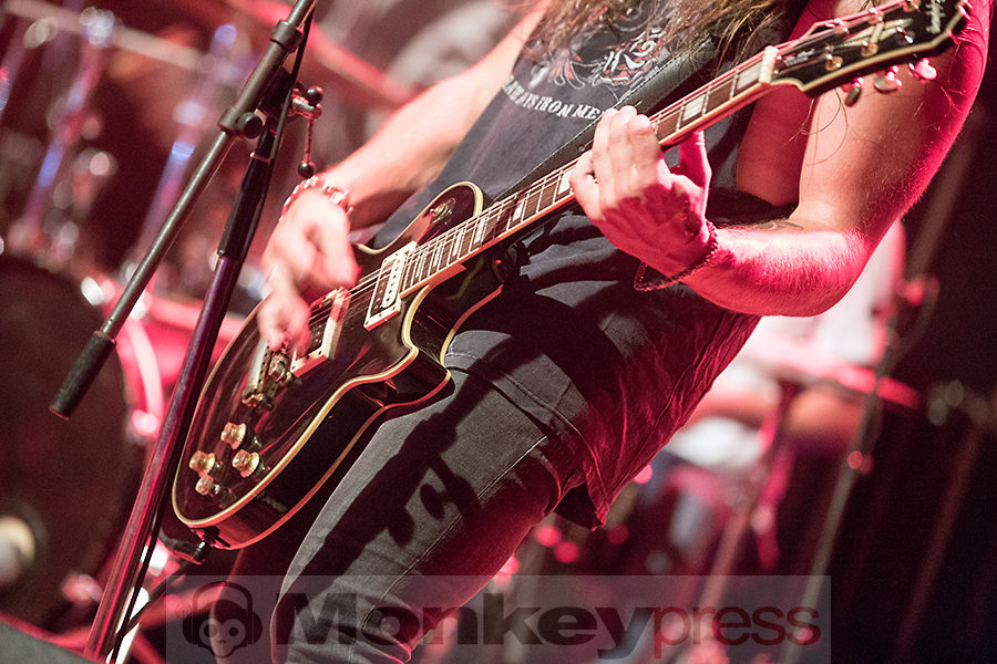 An diesem super Konzertabend ereignet sich noch eine kleine und schöne Neben-Story. Für einen kleinen Jungen, lass ihn mal zehn Jahre alt gewesen sein, und seinen Vater ist es ein unvergesslicher Abend. Als bei Bad Boy For Love eine längere musikalische Phase beginnt, entschließt sich Herr Anderson das Publikum zu fixieren, entdeckt den Kleinen auf der Treppe und winkt ihn auf die Bühne. Der junge Mann ist ein wenig paralysiert, lässt sich aber doch von Vater und Umfeld auf die Stage komplimentieren. Und da steht er nun, neben einem ziemlich angeschlagenen Angry (kaum größer als er selbst) und dem hinzugeholten Mark Evans. Ein kleiner Junge zwischen zwei Legenden der Musikgeschichte, ein stolzer Vater, ein Angry in, na sagen wir mal der Lieber-Opa-Rolle, der den Jungen versucht seine Nervosität zu nehmen: Einfach eine rührende Szene.
