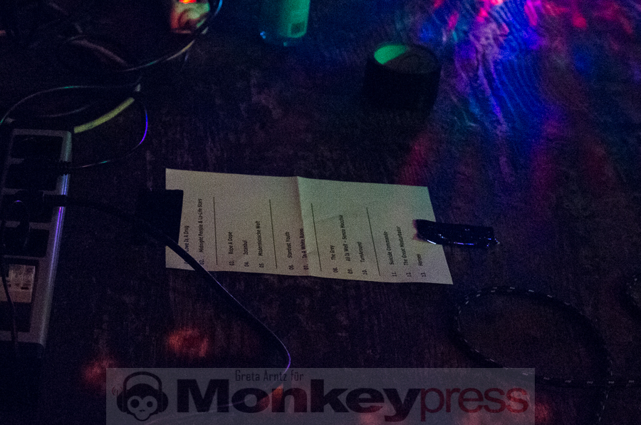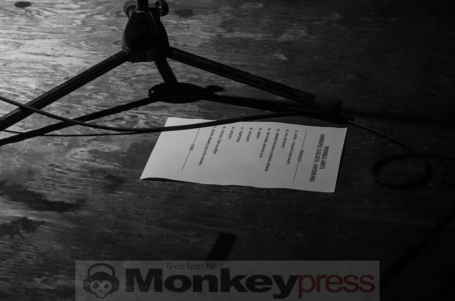 Der Goldene Salon ist gut gefüllt und die beiden Kieler versorgen ihr Publikum mit einer bunten Mischung aus Coversongs und eigenen Stücken, alten wie neuen Produktionen. Nach wie vor Höhepunkt eines jeden No More-Sets ist sicherlich der Ewighit Suicide Commando, mit dem die Band 1981 internationale Erfolge feiern konnte.
