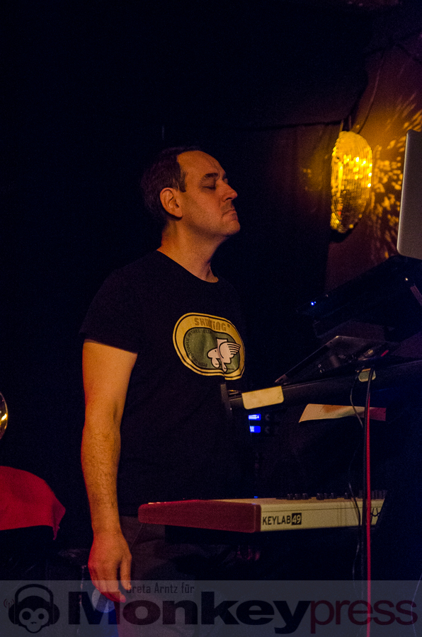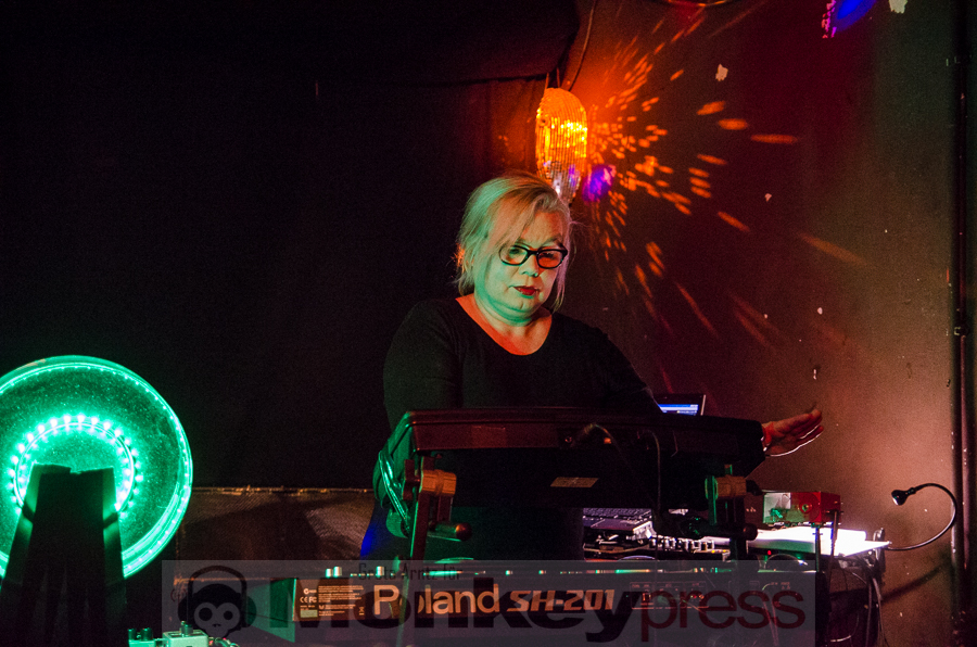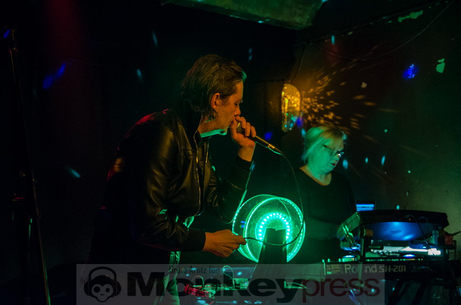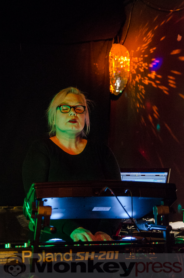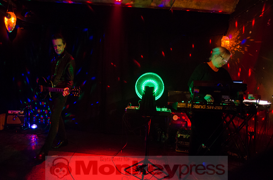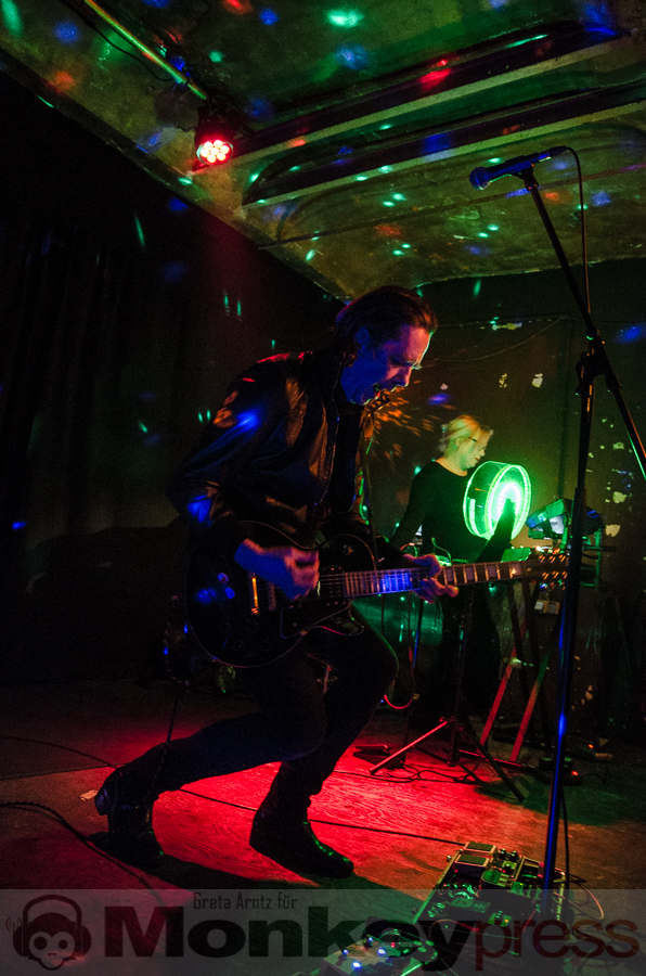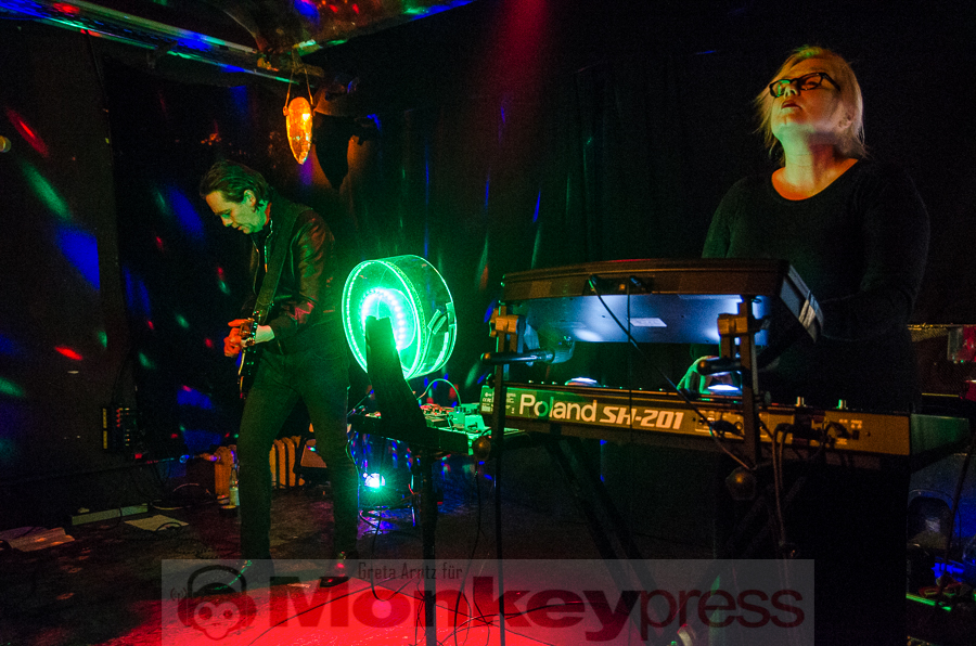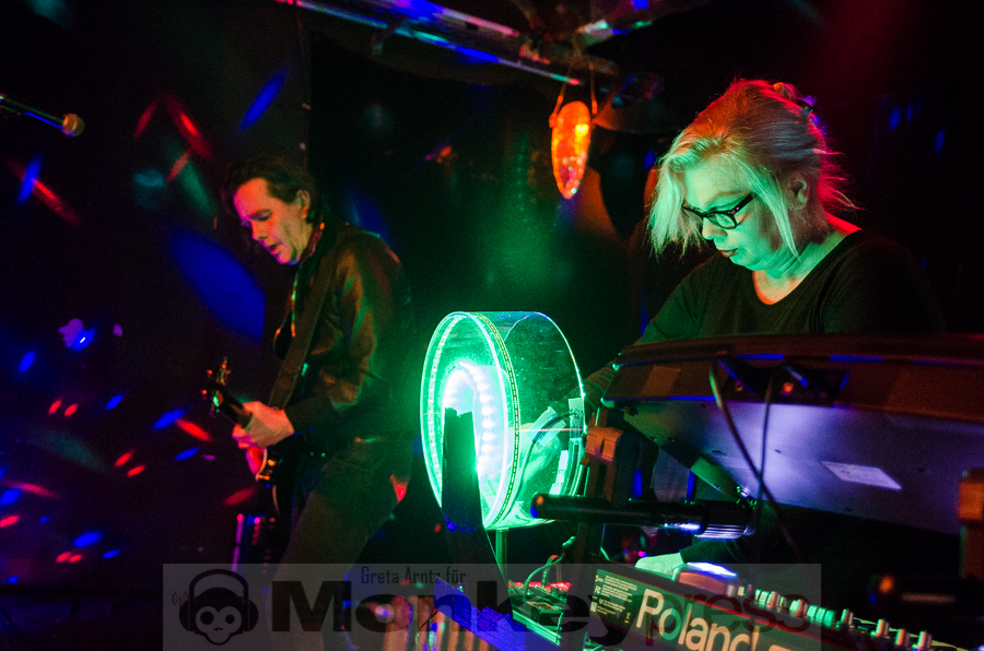 Ursprünglich von vier Menschen Ende der Siebziger gegründet, ist von dieser Formation nach einigen Jahren der gemeinsamen Bandgeschichte, einigen Platten und einer Trennung mit anschließender Wiedervereinigung nun noch das Duo aus Perkussionistin und der Frau fürs Elektronische Tina Sanudakura und Sänger und Gitarrist Andy Schwarz übrig geblieben. Die beiden stehen seit 2008 wieder als No More auf der Bühne und beweisen unter anderem an diesem Abend, dass sie dazu auch allen Grund haben.