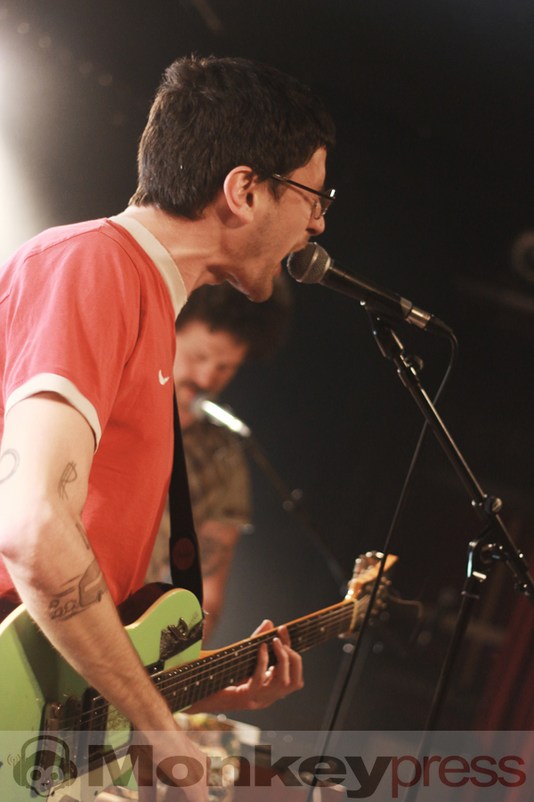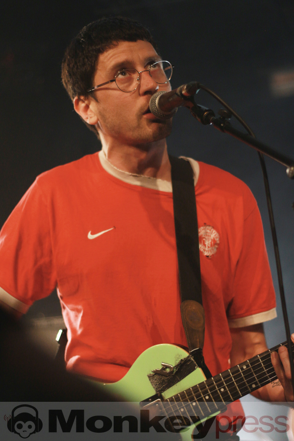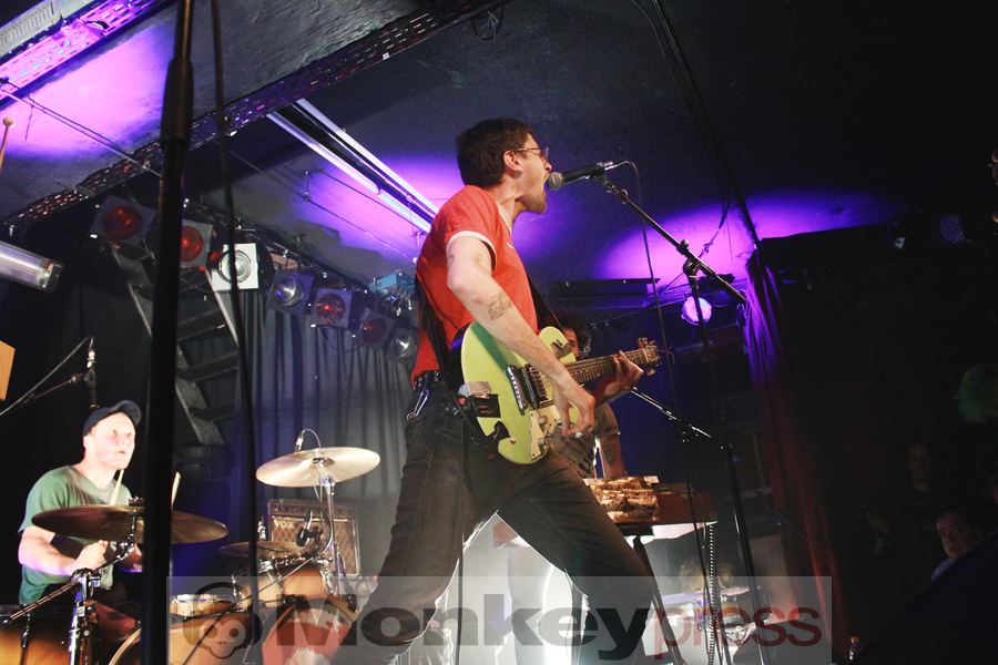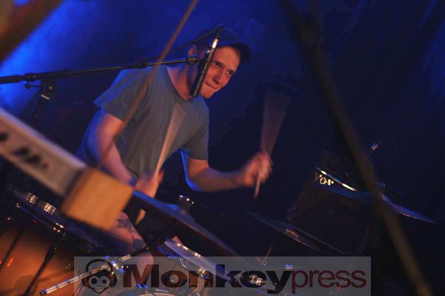Der überraschend warme Aprildonnerstag lud zum „lauten Schwitzen“ in die Dresdner Groovestation ein. Das ausverkaufte Häuschen in der jungen Neustadt bot Raum für jede Menge Gegenwartsanalyse und Gesellschaftskritik bzw. den feuchtfröhlichen Auftritt der lokalen Gruppe Pisse. Ihr Name macht es leicht, das dargebotene Musikgenre zu erraten. Weg von allem, was an Alltag erinnert, ist jede Sekunde eine Bewegung auf die lauten Rhythmen der vier Herren, die es sich nicht nehmen ließen, auch zwei neue Songs (die im Übrigen „vom Leben handeln“) im Sinne einer Weltpremiere zu präsentieren. Voller Inbrunst verbalisierte das Publikum u.a. Biertitten und vor allem die unfassbare Eingängigkeit der Vernissage. Ein Topfdeckel fungiert als Instrument und Krach in der Musik, Dirk Bach als Drumfell-Cover. Pisse sind minimalistisch, stark, kurzweilig und lachen im wohl lautesten Applaus, den ein Abend-Eröffnungs-Act je empfangen hat.
