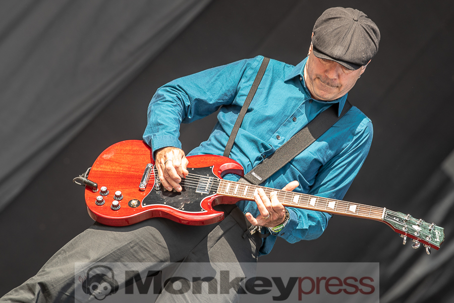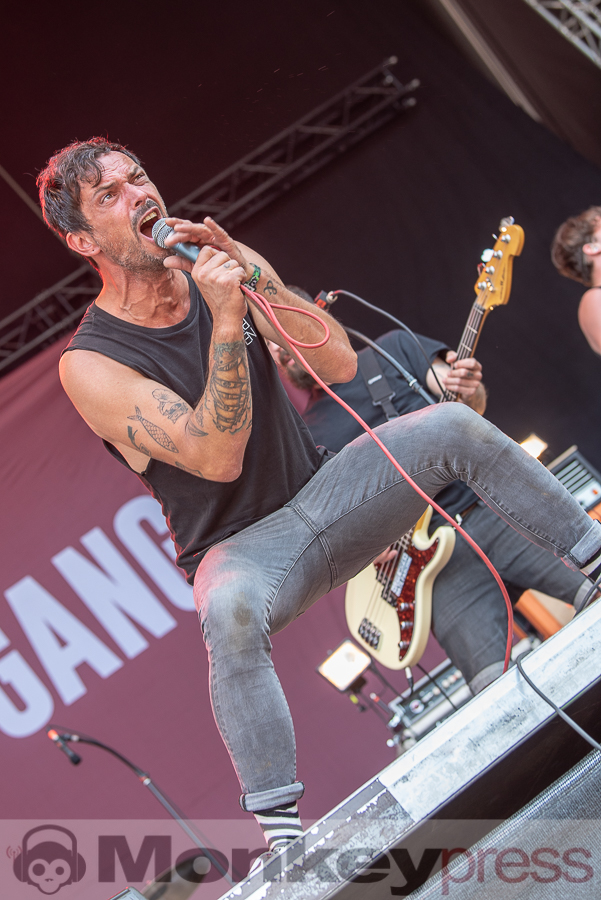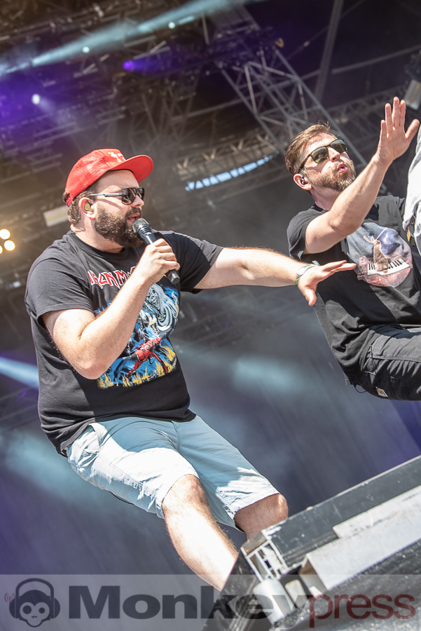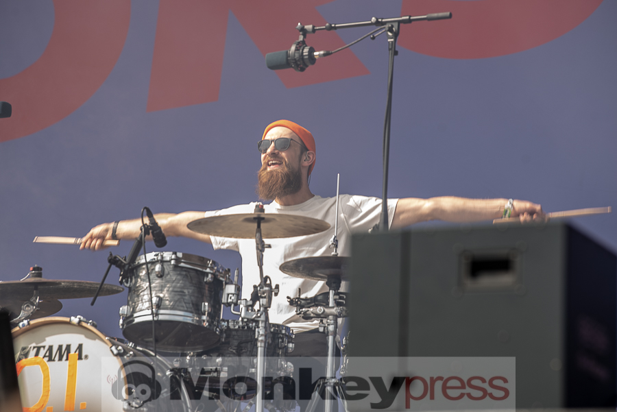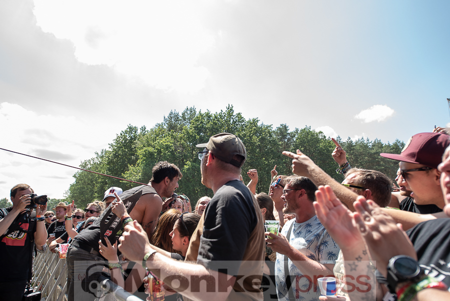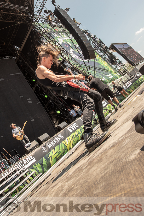 Mit viel Humor stehen auch Schmutzi auf der Hauptbühne. “Wir haben gestern auch die Band aus Düsseldorf gesehen, da war ähnlich viel los wie gerade”, sagt uns Sänger Beat Schmutz. Ebenso, dass sie nur wenig Platz auf der Bühne haben, da hinter ihnen noch Licht aufgebaut wird. “Wir haben gerade die Ansage von hinten bekommen, Mumford & Sons fällt aus, wir spielen den ganzen Tag”, meint er dann wieder später. Zwischen den Ansprachen gibt es natürlich Songs, die ordentlich Stimmung machen. Zum Ende gibt es noch einen riesigen Pit, in dessen Mitte sich auch ein Rollstuhlfahrer wiederfindet. Wer jetzt noch nicht wach ist, hat etwas falsch gemacht.