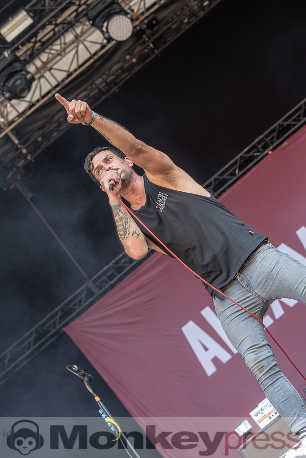 Auch wenn die Sonne versucht, alle in den Schatten zu verscheuchen, wird es immer voller vor den Bühnen. Keine Wunder, Zebrahead springen wie wild über die Bühne, oder zumindest Sänger Ali Tabatabaee. Man hat das Gefühl, er würde am liebsten mit im Pit feiern. Vor der Bühne wird aber auch ohne Einschränkung gefeiert und die Pits können sich für die Tageszeit schon sehen lassen. Auf der Bühne wird sich derweil auf die Musik konzentriert. Die große Show erwartet man vergebens, aber tut das wirklich zur Sache, wenn man durchgehend im Pit am Feiern ist?