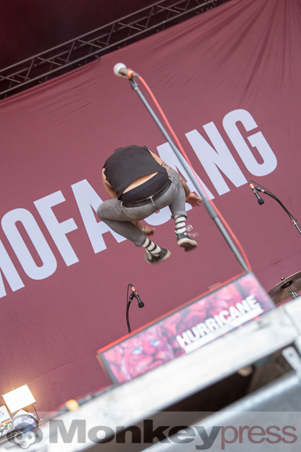 “Wir sind seit ungefähr seit zehn Tagen unterwegs und dürfen jeden Abend ein Konzert spielen und freuen uns schon das ganze Jahr auf das Hurricane. Aber wie es jetzt aussieht, mit Euch allen hier, hatten wir nicht erwartet” – So schön begrüßt uns Sänger Sascha Hörold der Alex Mofa Gang. Zusammen mit der Band feiern wir heute eine (fast) Release-Show zu dem am Vortag erschienenen Albums Ende Offen. Zusammen wird gefeiert, als ob am nächsten Tag die Welt unterginge. Sascha nutzt die Gunst der Stunde und stagedived gegen Ende der Show mit einem Salto von der Bühne hinfort.
