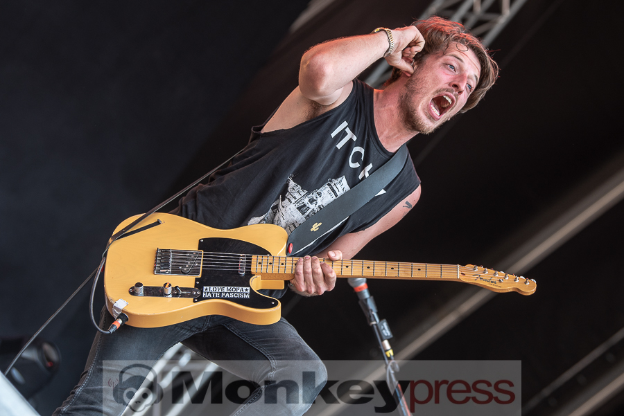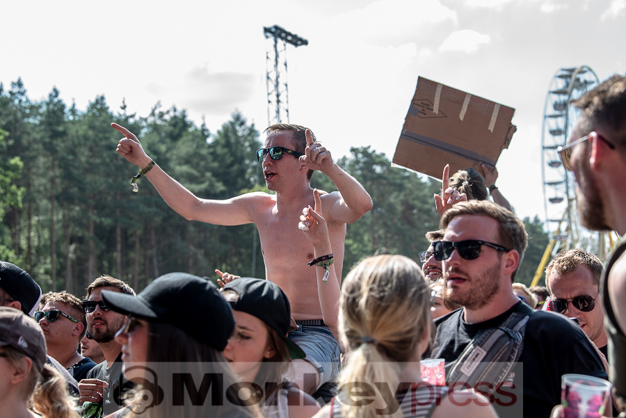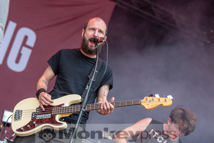 “Seid Ihr bereit für eine Stunde mittelmäßige Musik?”, ruft uns Sänger Yonas zu, als Montreal die Bühne betreten. Das Publikum stimmt der Aussage nicht ganz zu und beginnt direkt einen großen Pit zu bilden. Am Vortag erschien die Single Dreieck Und Auge des im August erscheinenden Albums Hier Und Heute Nicht, welches natürlich auch live gespielt wird. Am Ende erfahren wir noch von einem Alltagsproblem von Yonas: “Da spielt man ne Stunde, trinkt an seinem Bier, dann kommt die Sonne und Zack ist man vor über 3000 Leuten besoffen. Kennt Ihre alle, oder?” Abgerundet wird der Auftritt mit dem Song Katharine Katharine, welches schamlos gecovert wird. Das Publikum singt natürlich lautstark mit.