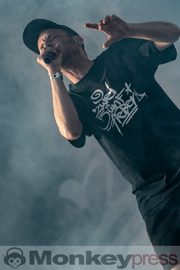 Und plötzlich steht ein Shrimp auf der Bühne: Die Orsons setzen die Messlatte, was Sinnlosigkeit angeht, schon recht hoch. Dafür machen sie aber Stimmung, wie kein anderer. Zwar gibt es seit 2015 kein neues Material mehr, was sich aber bald ändern soll. Mit Vielleicht hören wir einen unveröffentlichten Song, welcher sehr gut ankommt. Zum Finale bringen Die Orsons dann Schwung In Die Kiste und reißen nochmal alles ab. Das Publikum gibt natürlich nochmal alles und singt den Song noch über Minuten hinweg weiter.