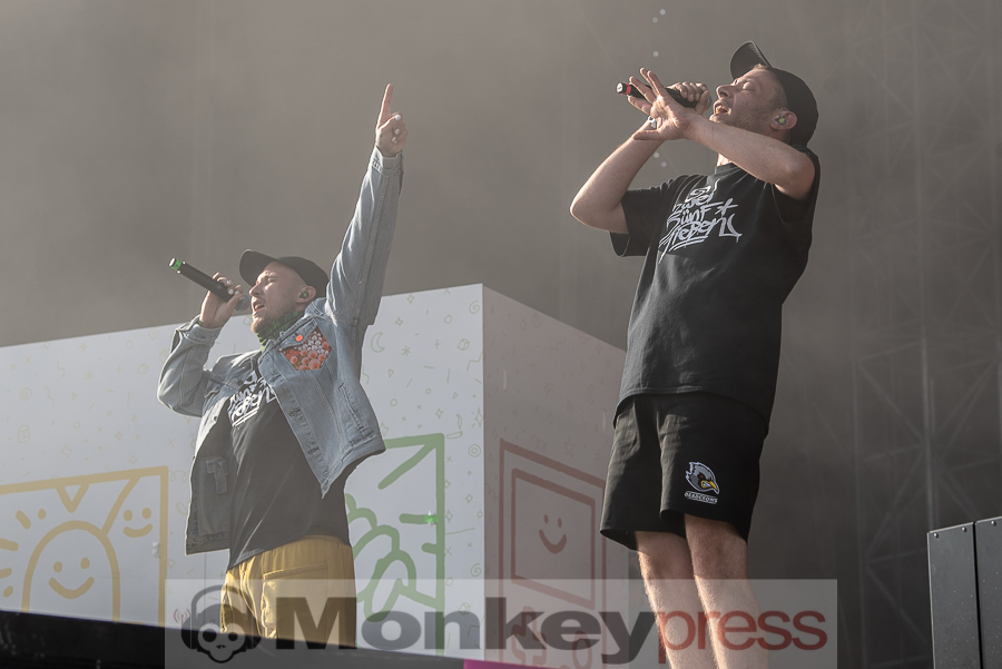 Viele Jahre war es still um Fünf Sterne Deluxe, die gemeinsame Band von Das Bo und Tobi Tobsen. Vor ein paar Jahren dann die plötzliche Wiederkehr. Und was kann man dazu heute sagen? Es ist fast so, als wären sie nie weg gewesen. “Die Radios sagen wir sind zu alt, die Kids im Club denken wir sind Zivilpolizisten. Wir wollen Euch nicht Euer Gras wegnehmen, wir wollen nur auch was abhaben”, sagt uns Tobi Tobson. Auf dem Hurricane sind sie aber genau richtig. Hier gibt es Oldschool Hiphop-Feeling, das jeden ein paar Jahre zurückversetzt. Beatbox Solo von Das Bo inbegriffen.