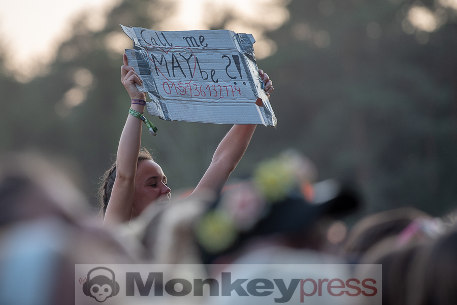 Zu kaum einem Zeitpunkt war es vor der Forest Stage so voll wie zu AnnenMayKantereit. Anfangs ist die Bühne von einem Vorhang verdeckt. Kaum geht dieser auf, steht dort Henning May mit seiner Gitarre. Das Geschrei ist direkt groß und das Tanzen beginnt, sobald er die ersten Töne singt. Bei seiner markanten, rauchigen Stimme bleibt keiner an seinem Platz und singt lautstark mit. Zwischen den Songs reicht es oftmals nur für ein “Vielen Dank”, was aber nicht weiter tragisch ist. Immerhin wirken nicht alle bei dem letzten Song Ich Geh Heut‘ Nicht Mehr Tanzen mit, denn genau das wird getan.