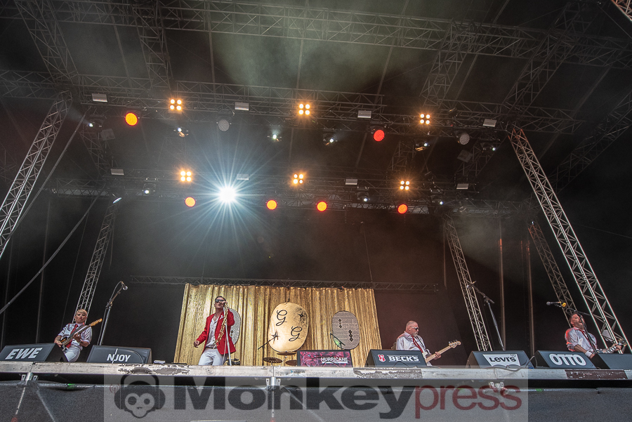 Mit den Worten “Hurricane, seid Ihr besoffen? Frühstück mit den Crackhuren” werden wir von The Toten Crackhuren Im Kofferraum begrüßt. So manch einer sieht wirklich schon wieder betrunken aus, aber wir sind ja auch auf einem Festival und haben 13 Uhr. Die Stimmung kann man als chaotisch gut bezeichnen. Das was auf der Bühne passiert auch. Immerhin rappen hier dicke, oberkörperfreie Männer leicht neben dem Beat im Hintergrund der Crackhuren. Gut, die Band nimmt sich selbst und ihre Fans auch nicht wirklich ernst. “Alle die noch Hände haben, jetzt nach oben”, passt als Ansprache dort perfekt ins Bild.