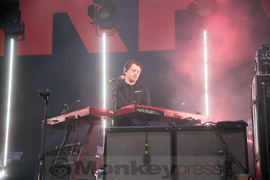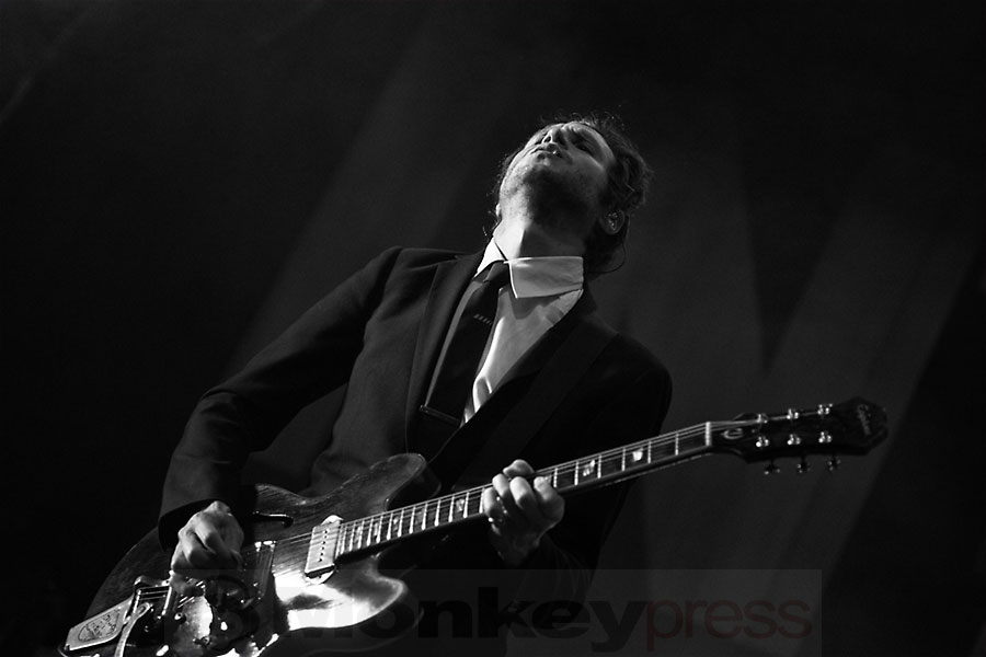 Das Quintett von Interpol, mit den festen Bestands-Mitgliedern Paul Banks an Gitarre und Mikrophon, Drummer Sam Fogarino und Gitarrist Daniel Kessler, brachte mit Pioneer To The Falls direkt eine wunderbare Atmosphäre in die nun fast volle Spielstätte. Eine wunderbare Vermengung auf der Setlist, kombiniert mit einer sehr an einen Abschlussball erinnernde Lichtshow, tat ihr Übriges, um die Zuschauer zu verzaubern. Man hielt sich nicht so sehr an den neuen Longplayer, auch wenn natürlich die flotten Knaller The Rover oder If You Really Love Nothing zum Besten gegeben wurden; und von der neuen EP kam gerade mal der Titeltrack Fine Mess auf das aurale Tablett. Vermehrt waren es Songs wie Say Hello To The Angels, Leif Erikson und natürlich die Single NYC aus dem ersten Album, die sich in den Vordergrund drängten und welche die Band mit großer Hingabe aufspielte. Wortkarg, aber immer freundlich grinsend, kündigte Banks gelegentlich einen Track an oder stellte peu à peu die Bandmitglieder vor, wobei gerade Keyboarder Brandon Curtis mit einigem Background-Gesang erwähnt werden sollte. Der gut abgemischte Klang in der altehrwürdigen Spielstätte ließ besonders die gitarrenstarken Songs wie The Heinrich Maneuver oder das eher ruhige Rest My Chemistry regelrecht aufleben. Dank der gelungenen Songauswahl verging der Auftritt der Amerikaner leider viel zu schnell. Die Spielfreude übertrug sich spürbar auf die Zuschauer und nicht wenige waren überrascht, als Interpol nach dem Klassiker Slow Hands die Bühne verließen.