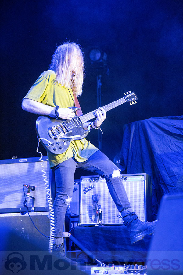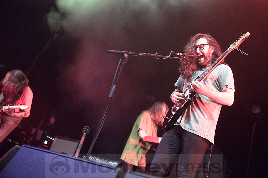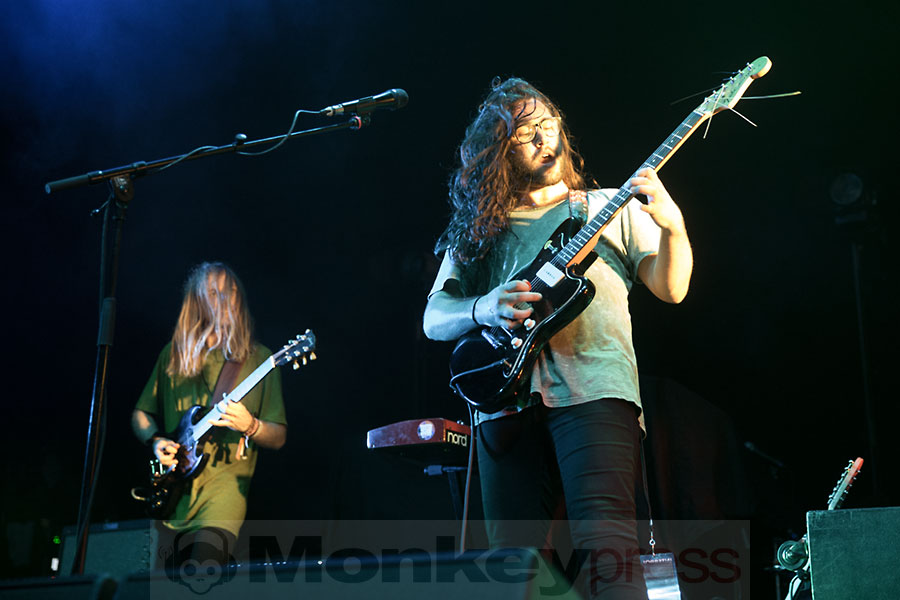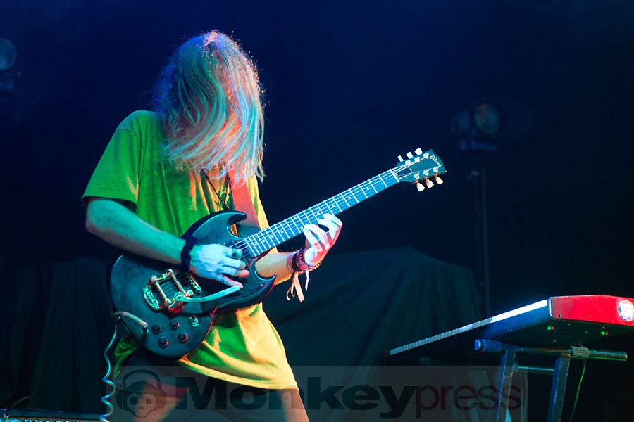 Mit im Gepäck hatten Interpol eine Combo mit dem etwas verwirrenden Namen Psychedelic Porn Crumpets und dieses Quintett, das den weiten Weg aus Australien auf sich genommen hatte, legte dann auch überpünktlich los und spielte dem schon gut gefüllten E-Werk seine Variante einer Mischung aus Stoner- und Psychedelic-Rock vor. Dies begann direkt mit dem Track Entropy und in der folgenden knapp dreiviertel Stunde gaben die Aussies einen guten Querschnitt ihrer bisherigen drei Alben zum Besten. Auch vom aktuellen Werk gab es unter anderem den Track Hymn For A Droid zu hören. Psychedelic Porn Crumpets erinnert mit Songs wie Nek gar an Biker-Rock und wer auf die nun erwähnte Musikmischung abfährt, der sollte sich die Jungs aus Down Under unbedingt mal näher zu Gehör führen.