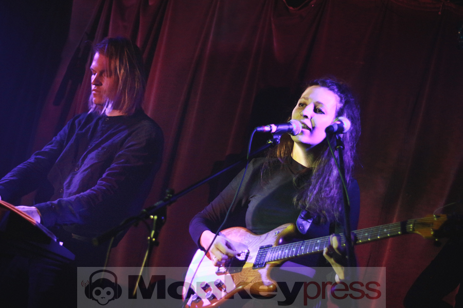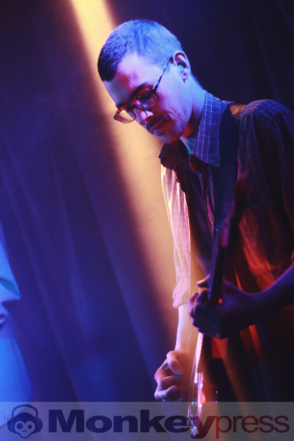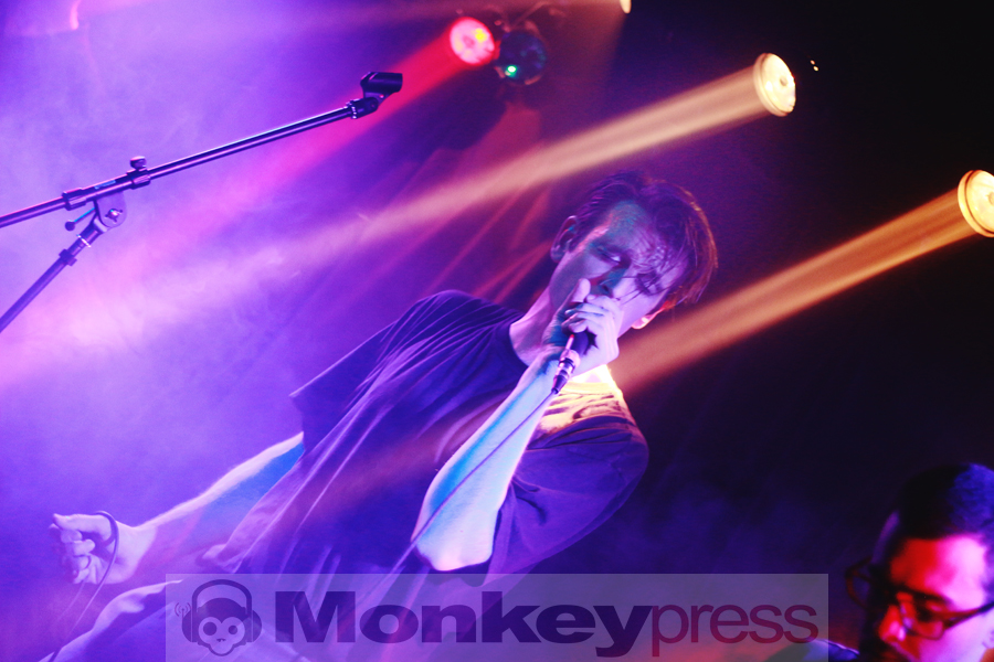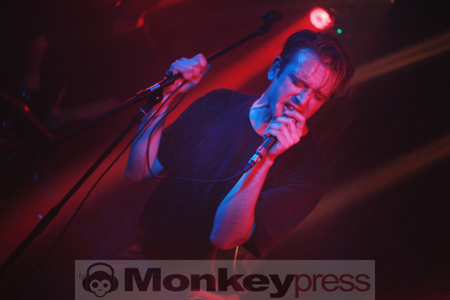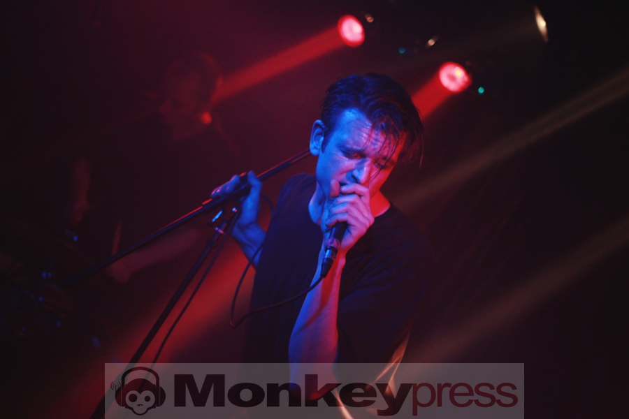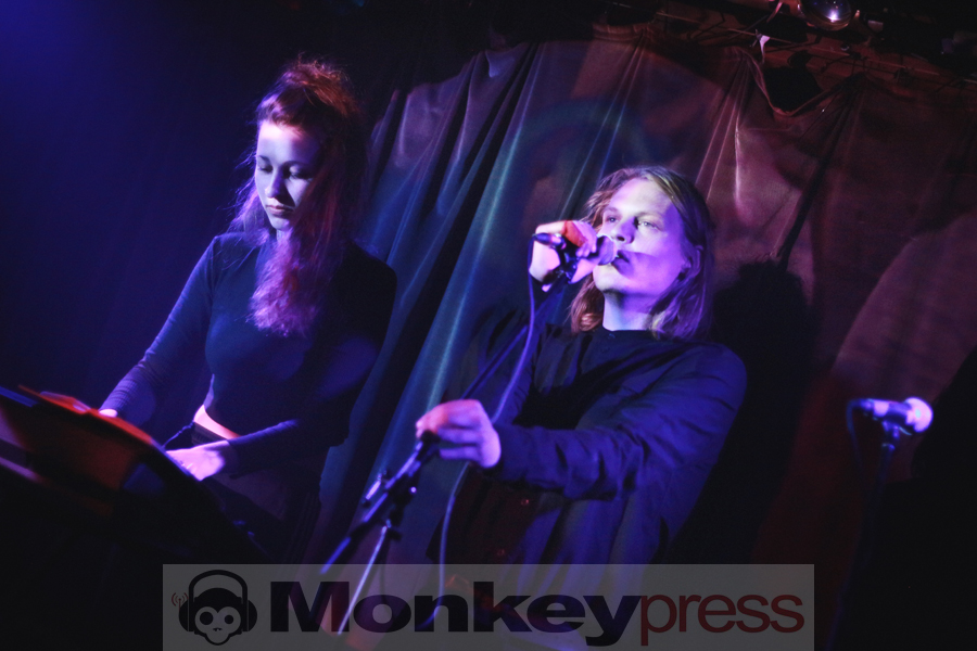 An diesem Abend lohnte es sich für Lovely Heroin, die den lokalen Support mimten. Das Duo legt mit wabernden Melodien vor, die vor der Videoprojektionsfläche im dunklen Keller angenehm undergroundig wirkten. „Anger“ leuchtet im Hintergrund auf, während im Vordergrund mit Tonproblemen gekämpft wird. Es folgt ein Instrumentenwechsel, Gesang der in Gedanken Schlieren zieht und mitschwingende Körperbewegung. Umringt von ausschließlich schönen Menschen durchdringen die vollen, hypnotischen Klänge zur späten Stunde.