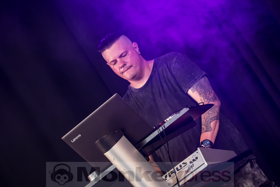 Etwas luftiger (nicht nur wegen der bestens funktionierenden Klimaanlage) war es auf der MSRheinEnergie. Ash Code um die Zwillingsbrüder Adriano und Alessandro Bellucio gehören sicher zu den besten jungen Dark-Wave-Acts überhaupt. Mit Ausnahme von Oblivion, das von viel zu starkem Basswummern geradezu verstümmelt wurde, machte der abwechslungsreiche Sound richtig Spaß. Als kleines Bonbon für die Fans wurde sogar der deutschsprachige Titeltrack des aktuellen Albums Perspektive in die Setlist integriert.
