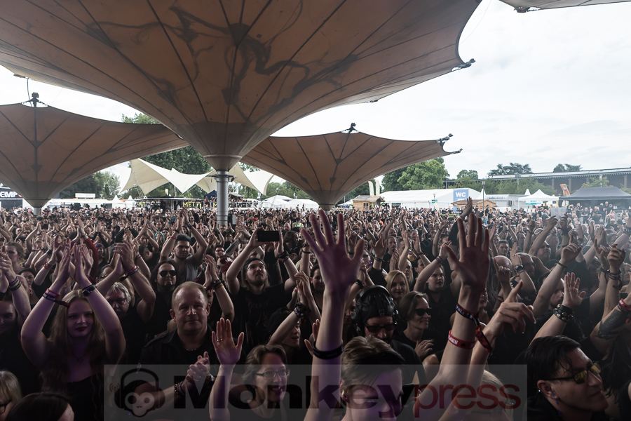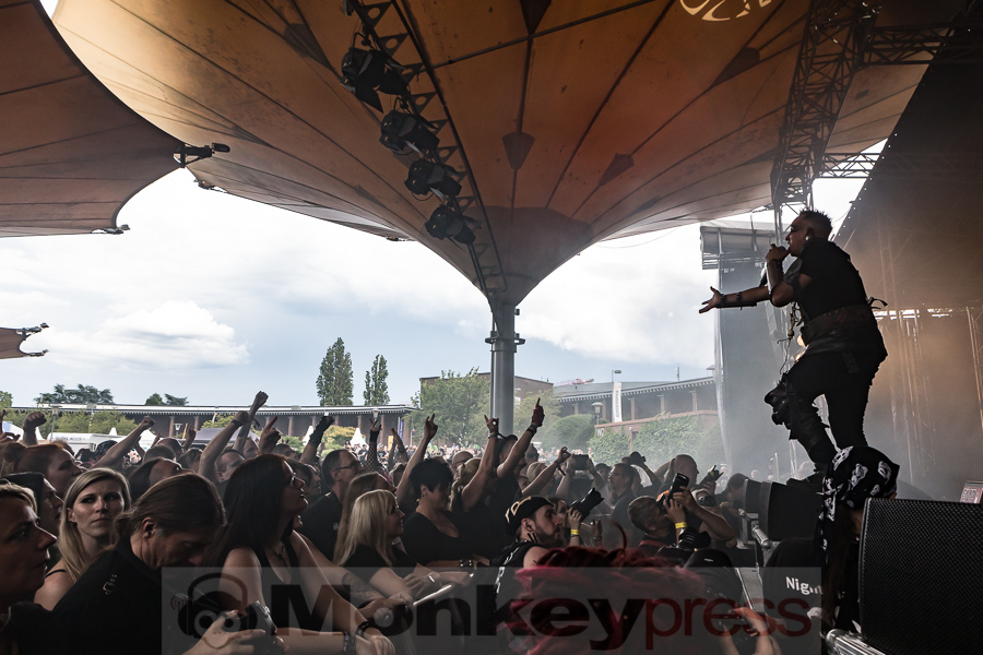 Ebenfalls mit einer neuen Veröffentlichung (9. August) stehen Lord Of The Lost in den Startlöchern. Allerdings handelt es sich bei Till Death Us Do Part „nur“ um eine Best-Of. Sei’s drum: Chris Harms & Co. lieferten Hits in gewohnter Qualität und verzückten ihre zahlreich anwesenden Fans darüber hinaus mit einer der kräftigsten Lichtshows des Wochenendes.