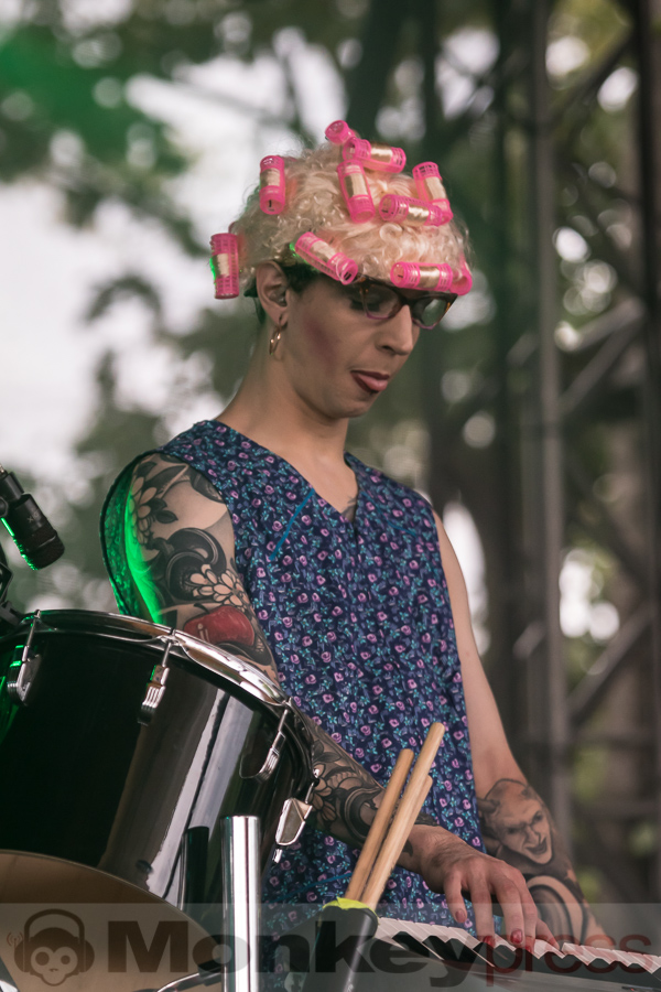 Zu späterer Stunde entwickelte sich dann ein aus den Vorjahren bekanntes Problem, für das aber niemand so recht eine Patentlösung zu entwickeln vermag. Pünktlich zum kräftig einsetzenden Platzregen bildete sich eine lange Schlange vor dem Einlass zum Theater. Wer es pünktlich hinein schaffte, den entlohnten Solitary Experiments mit viel Energie – und im nun proppevollen wie heißen Theater konnten die nassen Haare und Klamotten dann auch bestens trocknen.