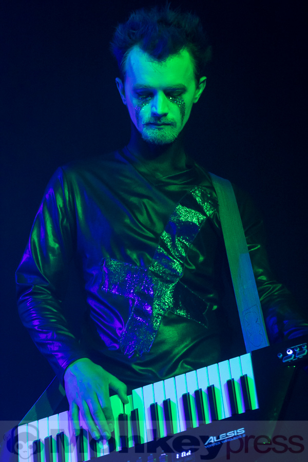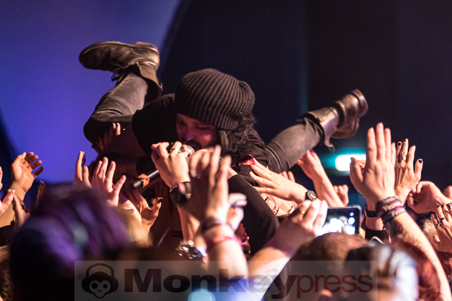 So konnte sich der großgewachsene Ausnahmekünstler aus Eskilstuna einsingen – zur Abwechslung sah man ihn dabei auch mal ungeschminkt. Gut 40 Minuten später kehrte er mit der üblichen Bühnenbemalung zurück und stellte viele Stücke des aktuellen Albums Gimme Daggers vor, dazwischen wurden altgeliebte Songs wie Dracula oder Grenade eingestreut. Ein toller Gig, vor allem im Vergleich zu dem an Ort und Stelle vor zwei Jahren, als de la Cour kurz nach einer schweren Blutvergiftung nach Köln kam und den Auftritt stark geschwächt nach nur acht Liedern abbrechen musste.