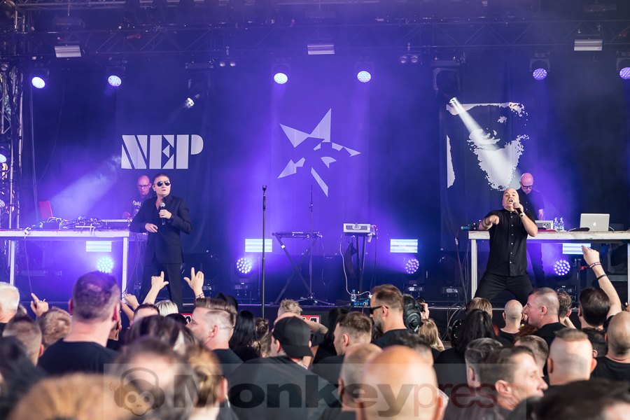 Zum Auftritt des nun zum Quartett angewachsenen Szene-Urgesteins gingen allerdings die Meinungen auseinander. Nach fast acht Jahren waren Douglas McCarthy, Bon Harris und die „alten neuen“ Mitglieder David Gooday und Simon Granger wieder live in NRW zu sehen, die Vorfreude war entsprechend riesig. Schnell zeigte sich jedoch, dass die durchweg alten Songs komplett neu gemixt wurden. Kein Schlagzeug mehr auf der Bühne, dafür Granger, Gooday und Harris hinter Maschinen – das Ergebnis klang eher nach einem Techno-DJ-Set mit Live-Gesang als nach EBM. Der ein oder andere Hardliner ließ seinem Unmut auf dem Heimweg oder auf Facebook freien Lauf. Durchaus nachvollziehbar, weil neben fetten Stampf-Beats auch runde 15 bis 20 Dezibel Lautstärke fehlten. Der Punch, für den NEP seit jeher berühmt sind, ließ zu wünschen übrig – hoffentlich wird dies bei der November-Tournee besser. Da war auch die Tatsache, dass mit Alarm (inklusive Live-Geschrei von Gooday) und Fitness To Purpose zwei Stücke der 1987er-Debüt-LP That Total Age nach Jahrzehnten (!) ins Set zurückkehrten, für einige nur noch ein schwacher Trost. Insbesondere auf Facebook äußerten sich aber auch viele positiv zur Performance des Headliners – wie gesagt, die Meinungen gingen auseinander.