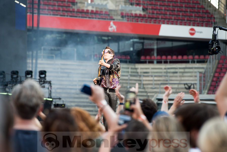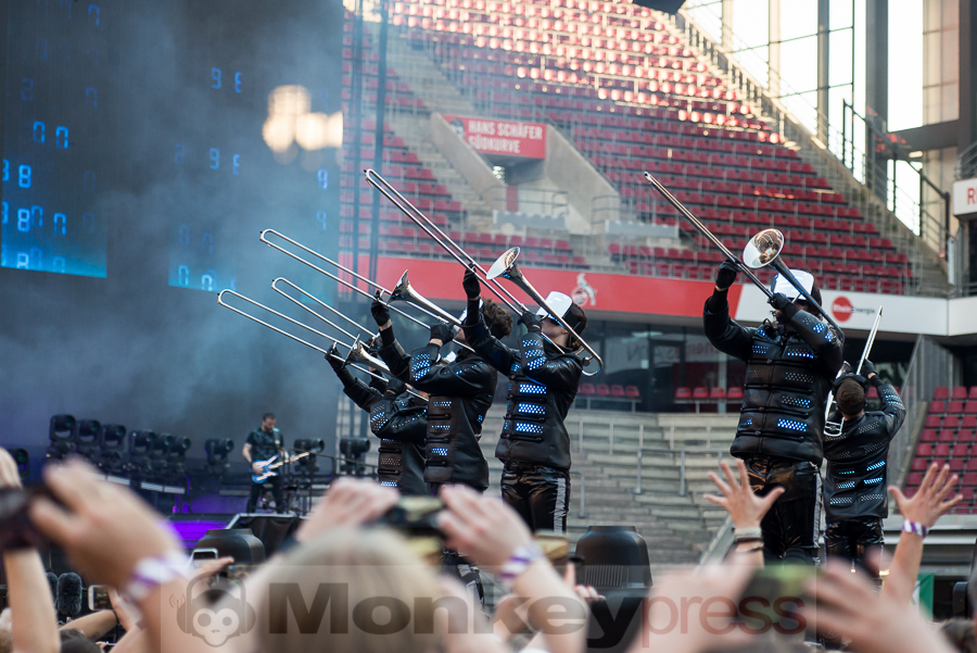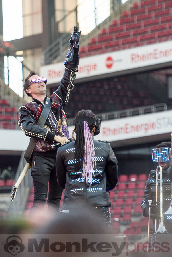 Von den Effekten her steigert sich die Show immer mehr, das Highlight ist ein riesiges Zombiemonster, was sich über mehrere Meter Höhe und Breite erstreckt. Nicht alles immer besonders einfallsreich, aber wirkungsvoll für die Stimmung. Und da auch die Setlist kaum Wünsche offenlässt, machen Muse auch hier wieder vieles richtig. Die 42.000 Zuschauer im ausverkauften Stadion scheinen von der wuchtigen Show mehr als angetan und sind begeistert. Die Briten haben somit eindrucksvoll bewiesen, dass sie ein Stadion rocken können und mit ihnen auch in den nächsten Jahren zu rechnen sein wird. Die Spielstätte des Geißbocks steht noch – aber es war knapp.