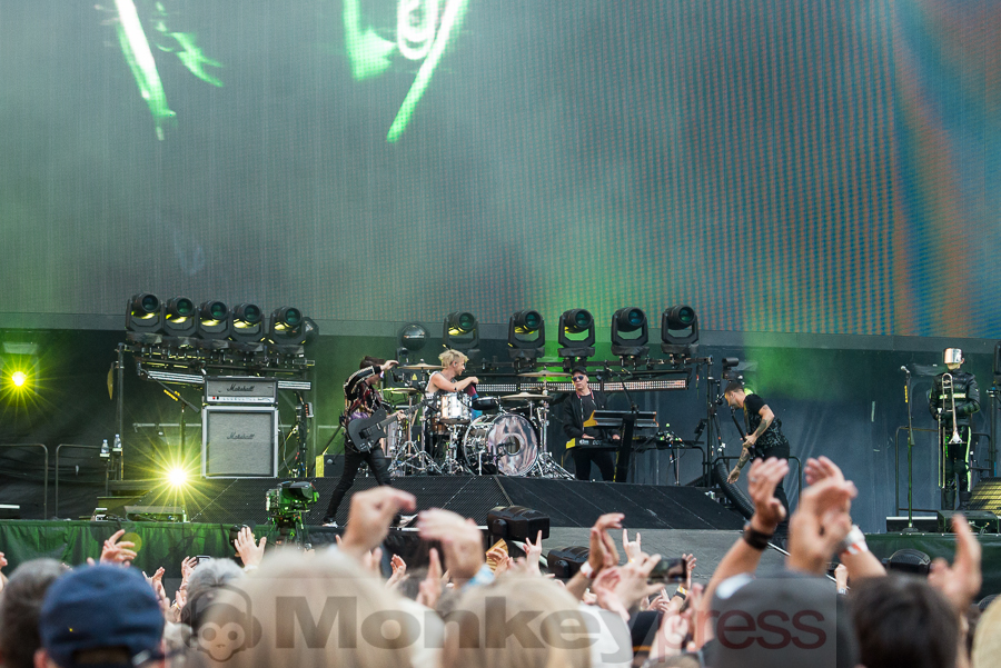 Die erste Band The Amazons pendelt irgendwo zwischen solidem Indie- und Alternativerock. Nicht übel, aber auch nicht aus der breiten Masse hervorstechend. Solche Bands gibt es dann doch eher wie Sand am Meer. Leider haben sich zu dieser Zeit noch nicht viele ins Stadion gewagt, weil dort die Sonne gnadenlos jedem Besucher einen Sonnenbrand verpasst.