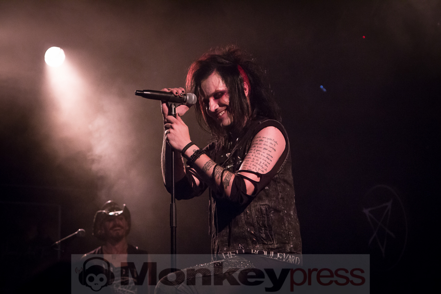 Die meisten Zuschauer im vielleicht zu 40 Prozent gefüllten Kulttempel schienen allerdings vor allem wegen Hell Boulevard angereist zu sein. Musikalisch sehen sich die Italiener als „Goth-Rock’n’Roller“ und legten im Vergleich zu den anderen Bands des Abends einen Härtegrad drauf. Songs wie Satan In Wonderland, Zero Fucks Given oder Love Is Dead punkten mit deftigen Riffs, Tempo und Ohrwurm-Melodien, dass Sänger Matteo „vDiva“ Fabiani nicht nur eine betörende, tiefe Stimme, sondern auch ein Szene-Model-Äußeres mitbringt, schadet dem Gesamtkonstrukt sicher nicht. Prognose: Mit ihrem Sound könnten Hell Boulevard das nächste große Ding im Fahrwasser von Mono Inc., Lord Of The Lost, Unzucht & Co. werden. Fleißig sind sie jedenfalls: Am Morgen des Oberhausens-Konzerts gab die Band weitere Tourdaten für 2020 bekannt (interessanterweise ausschließlich in Deutschland), ein neues, drittes Album namens Not Sorry wird ebenfalls folgen.