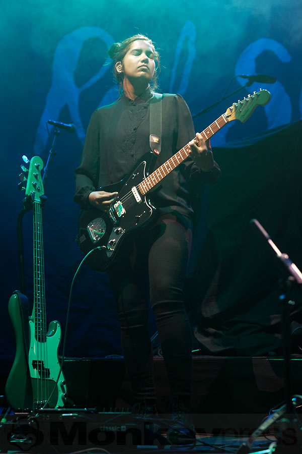 Die Pixies beginnen düster und druckvoll und legen direkt mal mit dem beliebten Cover von The Surftones‘ Cecilia Ann los, sehr zur Freude der Fans. Der Sound bleibt im respektablen Bereich, erwähnenswert ist da schon mehr die Lichtshow. Ob von der Bühnenwand hinter der Band oder durch bewegliche Strahler von der Decke: Es ist in den rund zwei Stunden oft knallig bunt. Dass die Pixies alle zwölf Songs vom aktuellen Album Beneath The Eyrie spielen, fällt kaum auf, da die Setlist mit 39 (!) Liedern reich bestückt ist. Doch da weder Frontmann und Sänger Black Francis noch die anderen Bandmitgliedern auch nur minimalst Konversation betreiben, bleibt die Stimmung etwas unter den Möglichkeiten. Der Saal kocht zu keiner Zeit. Und als im Schlussviertel sogar die neuen Songs überwiegen und auch blockweise gespielt werden, entstehen sogar Längen. So kommt ein lautes und kräftiges „Hey“ von Francis fast als Weckruf daher. Und als schon die Hoffnung gehegt wird, dass da jetzt was Nettes kommt, wird klar, dass das nur der Beginn des Songs ist. Für die Zugabe geht das Quartett nicht mal von der Bühne, winkt und bedankt sich kurz, um dann mit Debaser das Konzert zu beenden.