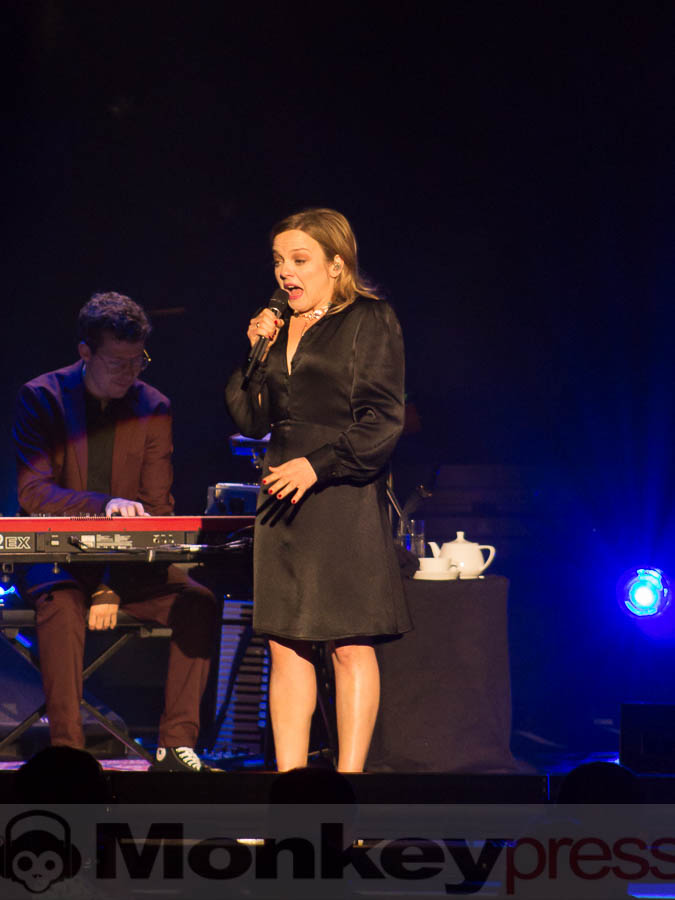Annett Louisan freut sich sichtlich über das Publikum, ist sie doch für diese Tour in den prachtvollen Saal aufgestiegen und wird warmherzig begrüßt. Sie hält den Kontakt zu ihren Gästen und schenkt Winker und Küsschen und lächelt. So naiv, wie sie Ihre Freundin Eve beschreibt, ist sie aber schon lange nicht mehr. Das Muttersein hat seine Spuren hinterlassen. Sie wirkt auch schon mal nachdenklich, und aus ihren Worten spricht eine große Prise Dankbarkeit. Dankbar, Mutter zu sein, dankbar eine Tochter zu sein und dankbar, bisher so ein abwechslungsreiches Leben führen zu dürfen.