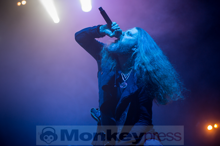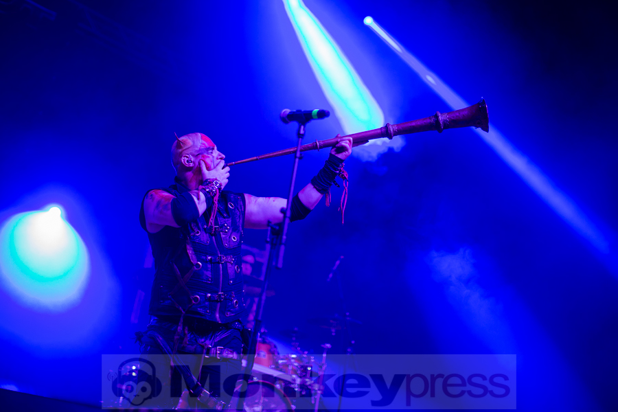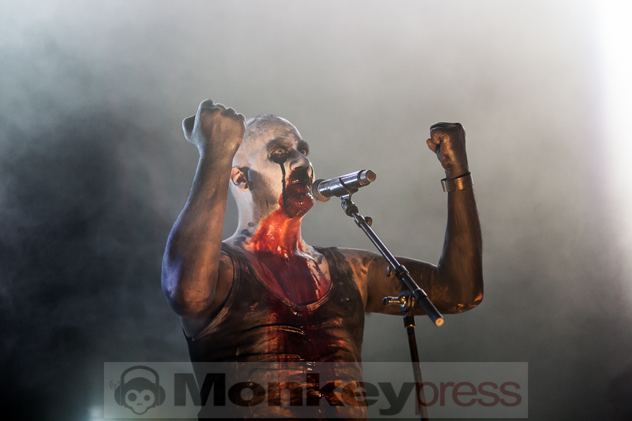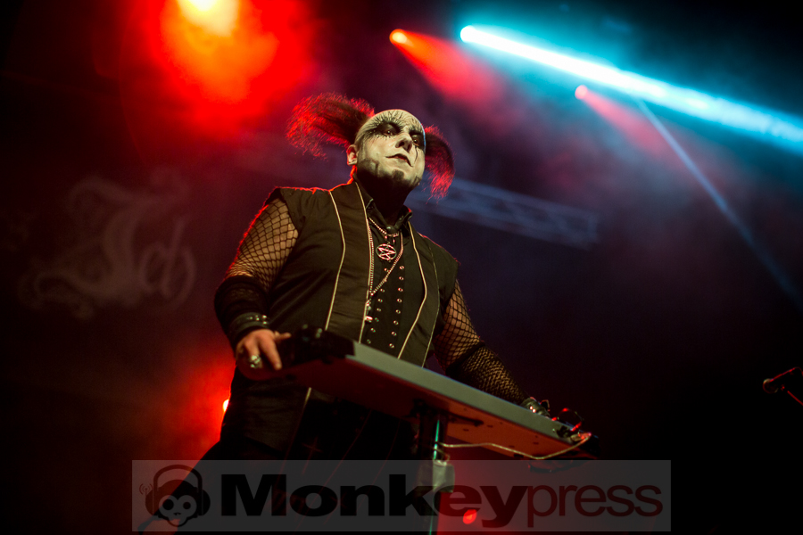 Das bayrische Duo Das Ich folgten anschließend im großen Saal. Seit 30 Jahren machen Stefan Ackermann und Bruno Kramm gemeinsam Musik. Die Shows von Das Ich sind sowohl ein visuelles, als auch musikalisch einzigartiges Erlebnis. Wie gewohnt trat Stefan Ackermann rot bemalt vor das Publikum. Das elektronisch-sinfonische Musikprojekt kann mittlerweile auf ein breites Repertoire von Songs zurückgreifen. Titel wie Kain Und Abel, Die Propheten und Gottes Tod durften auch an diesem Abend nicht fehlen. Die Show begeisterte die Fans bis in die letzte Reihe.