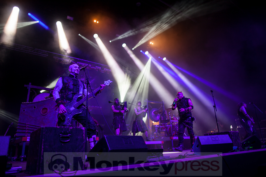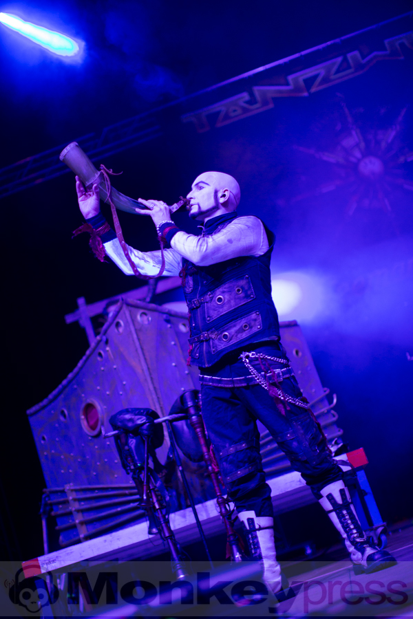 Die Mittelalter-Industrial-Band Tanzwut stand als nächstes auf dem Programm. Die Band ist aus Corvus Corax hervorgegangen, Tanzwut lässt jedoch mehr elektronische Elemente in ihre Musik einfließen. Vor einem halben Jahr erschien das Album Seemannsgarn. Auch die Bühne verwandelte sich jetzt in ein Segelschiff. Die Band hat hierzulande einen großen Bekanntheitsgrad. Daher war es für Tanzwut auch nicht schwer, die Besucher in ihren Bann zu ziehen. Begeistert riss das Publikum die Arme hoch und winkte im Takt. Zu den deutschen Texten konnten die Fans auch leicht mitsingen. Abwechslungsreiche Melodien, gespielt auf mittelalterlichen Instrumenten, sorgten für das entsprechende Ambiente.
