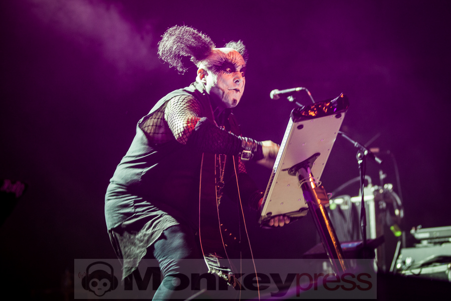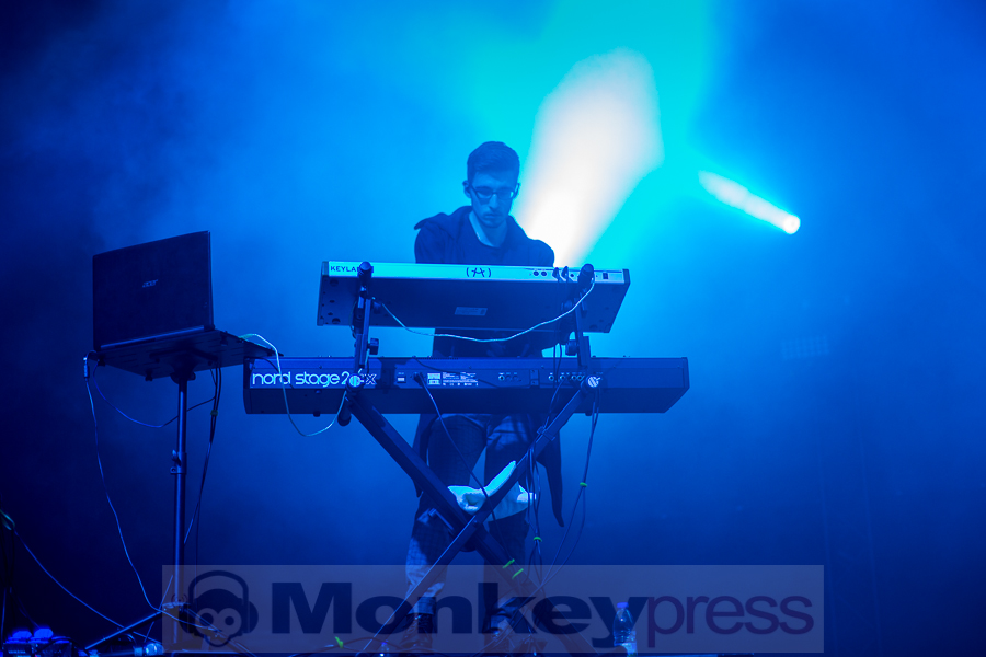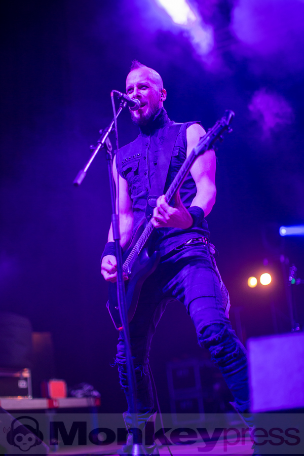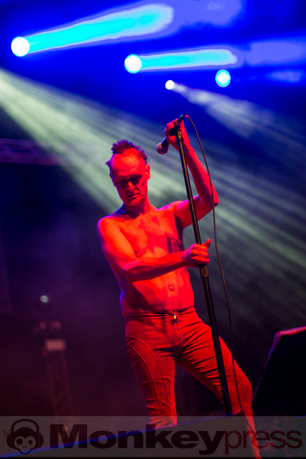 Gegen 23:15 Uhr war es dann auch Zeit für And One, der letzten Band im großen Saal und des Abends. Die Synthie-Pop-Band kann mittlerweile auf eine 30-jährige Geschichte zurückblicken. Die Keyboards waren etwas im Hintergrund, um vorne mehr Platz zu haben. Den brauchte Frontmann Steve Naghavi allerdings auch. Gleich mit dem ersten Titel heizte er die Stimmung im Saal an. And One präsentierten an diesem Abend einen Querschnitt aus ihrer gesamten Schaffensperiode. So wurden Klassiker wie Techno Man und Second Voice präsentiert. Aber auch neuere Stücke wie Unter Meiner Uniform kamen sehr gut beim Publikum an. Ganze 90 min feierten And One mit ihren Fans. Mit ihrer hervorragenden Performance waren sie ein würdiger Abschluss des Festivals.