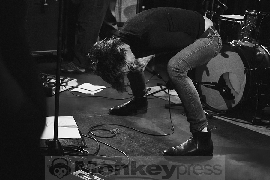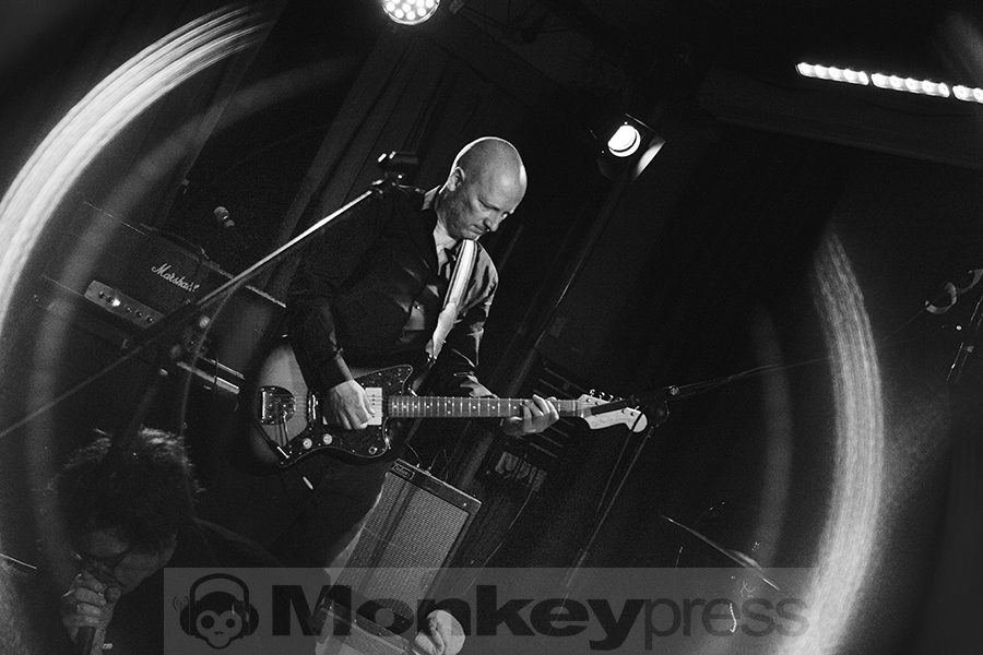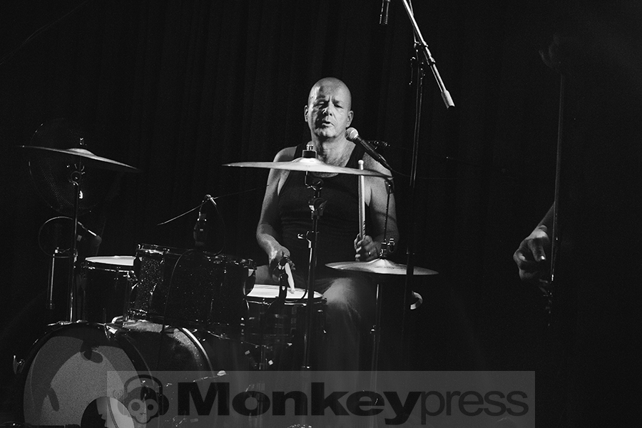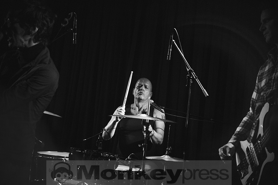Mit dem Album zur Wiedervereinigung, die keine ist, trat die Band mit dem bedeutsam prägenden Namen auf der Berliner Bühne zwischen roten Sofas auf (der Platz zum Stehen und Wackeln war selbstredend trotzdem im Überfluss gegeben). Ein bisschen später als geplant, um die Vorstellungen in der Volksbühne abzuwarten. Neulich sprach ich angeregt und reich an Eindrücken über die Grenze zwischen Dröhnen zum Rauschen und dem Gefühl dazwischen – Mutter sind das, nicht nur musikalisch sondern auch verbal („Die Gegensätze verschwimmen und werden eins. / Und ein riesiger Klumpen aus Abfall singt: / Wir sind wie füreinander gemacht.“) Schon schön. Im Takt von jenen und allen anderen Empfindungen wiegt sich Max Müller hin und her, hoch und runter, voller Inbrunst und Blicken. Das und ein Mundharmonikasolo zwingen in die Knie! Groß, träge und intensiv wummert das vierköpfige Konglomerat deutschsprachiger Musikgeschichte durch den Raum und verankert Erinnerungsbilder im Kopf. Verschwommen („Begriffe schwirren im Raum“, „Weggehen um Anzukommen“) füllt den Saal mit seiner Klangdichte. Danach wirkt Der Traum vom Anderssein wie eine Offenbarung. Sorgen („Will ich die Wahrheit hören?“) kommen auf, fin.