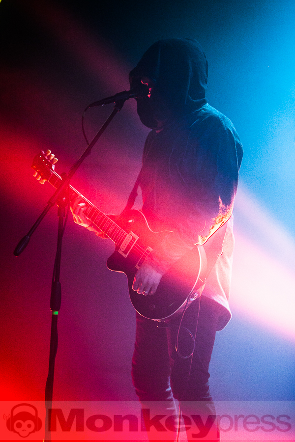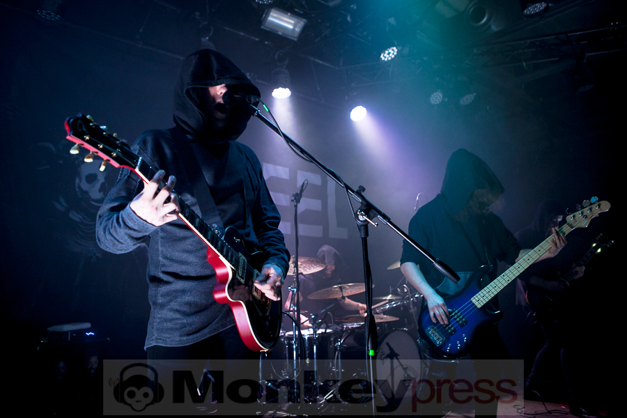 Der Headliner Wheel weiß sich nämlich eher in der Kategorie Dark-Metal einzuordnen, obwohl sie in ihren Songs immer eine dicke Ladung Progressive Rock hineinpacken. Schon fast als markantes Merkmal des Quartetts gewachsen, kamen die Finnen dann allesamt mit Kutten verhüllt und starteten ihr Set in einer verhaltenen Lichtshow mit dem Track Lacking aus dem Debüt-Album Moving Backwards. Nach und nach lüfteten dann die Musiker ihre verhüllten Köpfe und trieben die von Beginn an begeisterten Massen an. Der gut ausgerichtete Sound innerhalb der Lokalität und das eher in Rot- wie Blautönen gehaltene dunkle Licht gab dem Ganzen weiteren Brennstoff. So wirkten Songs wie Vultures oder mein persönlicher Favorit Tyrant sehr authentisch. Zu den Songs des Debüts gesellten sich wenige reifere Songs wie The Path. Sänger und Gitarrist James Lascelles überzeugte mit seiner stimmlichen Darbietung und machte das Gesamtbild ziemlich perfekt. Auch der neue Bassist Aki Virta zeigte sich sehr gut in das Bandgefüge integriert und kann mit seinem ansteckenden Lächeln und dem steten Auf-pushen der Fans als eine echte Bereicherung betitelt werden. Da das Quartett ihre Lieder oftmals lang und leicht verschachtelt angelegt hatten, war von vornherein klar, dass hier nicht zwei Dutzend Songs dargeboten werden. Als dann nach dem wegweisenden Song Wheel jedoch der musikalische Spaß sein Ende gefunden hatte, waren nicht wenige Zuschauer überrascht.