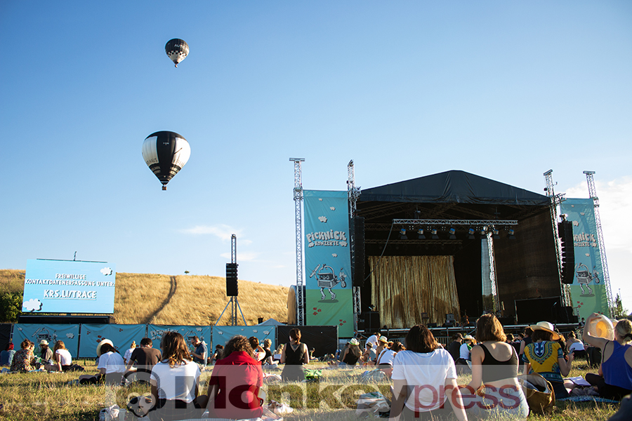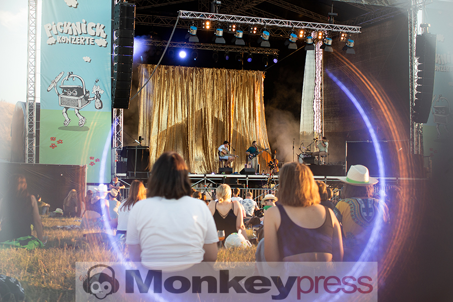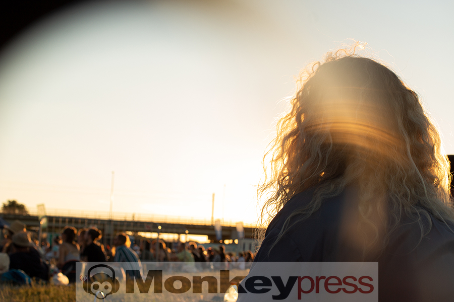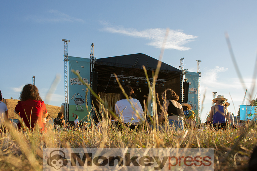 Wieder in wunderbarer Sommertag, an dem die untergehende Sonne kaum Wolken hat, die sie mit ihren warmen Strahlen berühren könnte. Die Heißluftballons machen sich bereit zum Start und rotieren über der Bühne am Hügel der Dresdner Rinne. Kein Support, aber ein pünktlicher Start der drei Herren die als Faber durch den Abend musizieren. Sitzend und grinsend gleichen die Handlungen des Publikums denen der Performenden. Ich schnappe auf, dass In Paris brennen Autos das beste Lied sei – finde aber das meiste schön, was die jugendlichen Herren ausstrahlen: Große Worte auf tanzbare Rhythmen, die hier nur Picknickdeckengroße Bewegungen erlauben. Natürlich schränkt es ein – aber nur minimal und nur den Raum in dem unser Körper agieren kann – die Gedanken sind ja immernoch frei!