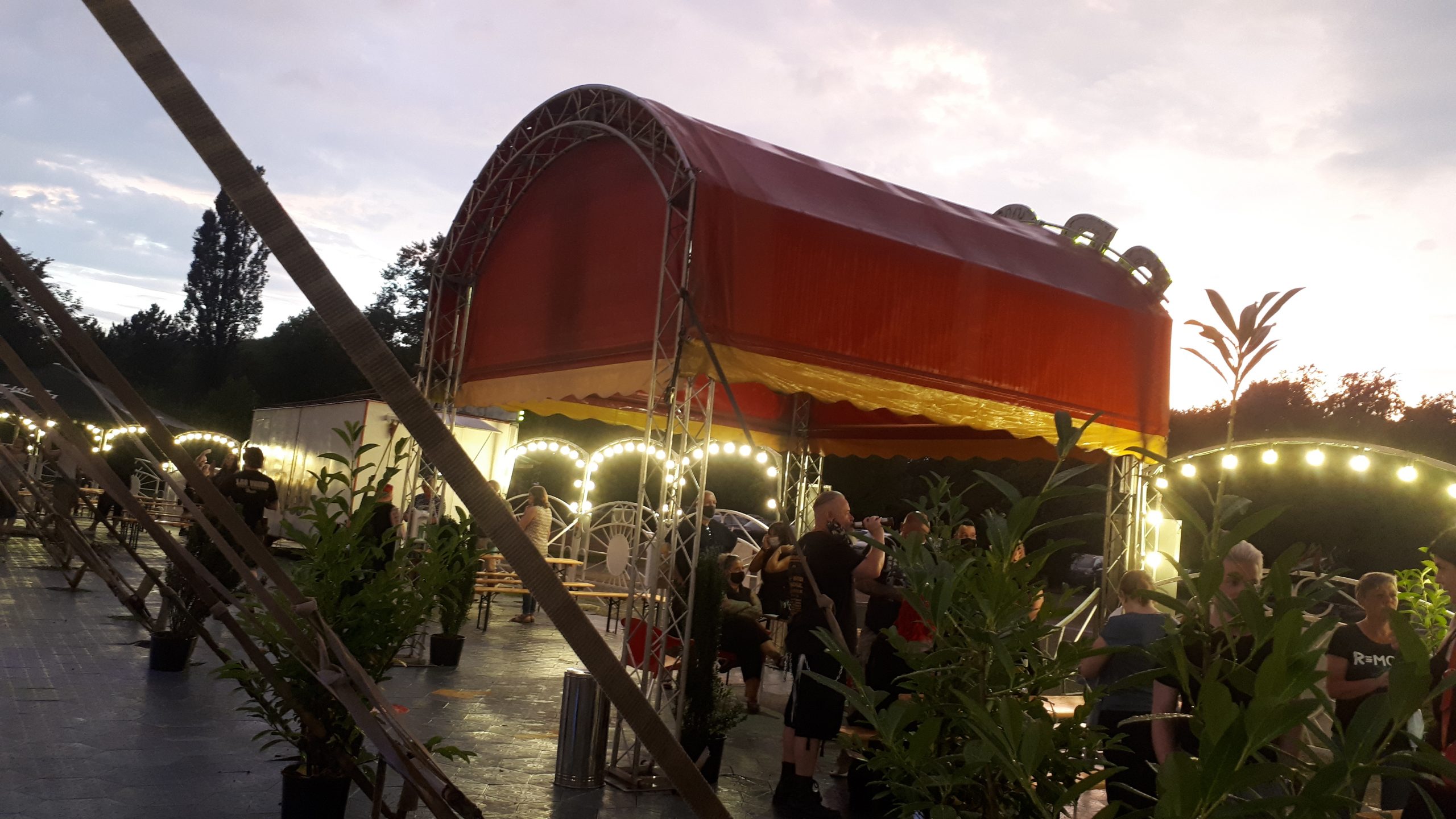 Doch wie bei jedem Konzert gilt: Wichtig is‘ auffer Bühne! Die steht hier da, wo sonst Akrobatisches aller Art aufgeführt wird, nämlich in der Mitte. Das Publikum wird drumherum platziert, bis zum Platz gilt Maskenpflicht. Am Platz darf dann auch ohne Maske getanzt und mitgesungen werden, für Frischluftzufuhr ist durch einige geöffnete Stellen im Zelt ebenfalls gesorgt. „Let’s have a black celebration“ war also das Motto des Abends und Remode um Sänger Dan Yell eröffneten mit dem dazu passenden Song aus dem Jahr 1986.