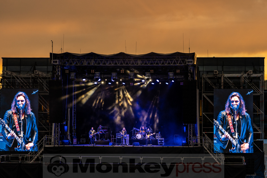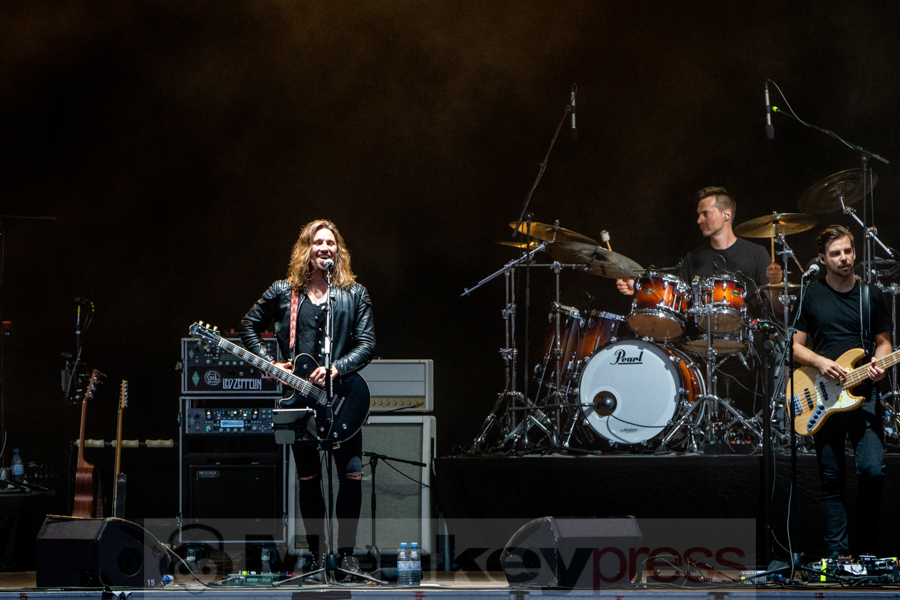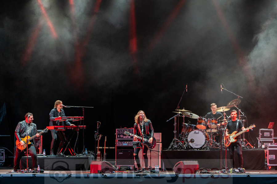 Der Gig startet und anfangs ist der Bass noch zu laut und Ofarims Gesang zu leise. Das ändert sich glücklicherweise recht schnell, jedoch geht der momentane Hit Alles Auf Hoffnung, den er und seine Band bereits an zweiter Stelle bringen, etwas unter. Musiker, Band und Publikum benötigen etwas Zeit, um miteinander warm zu werden. Mit zunehmender Dauer wirkt Gil Ofarim demütiger und es ist spürbar, dass es ihn berührt und nahe geht, diesen Gig bestreiten zu können. Und auch wenn es zwischendurch rockt, so sind es die leisen Töne, die diesen Abend schön sein lassen. Das Wetter hält glücklicherweise, es gibt nur ganz kurze kleine Schauer, die die Stimmung jedoch nicht trüben.