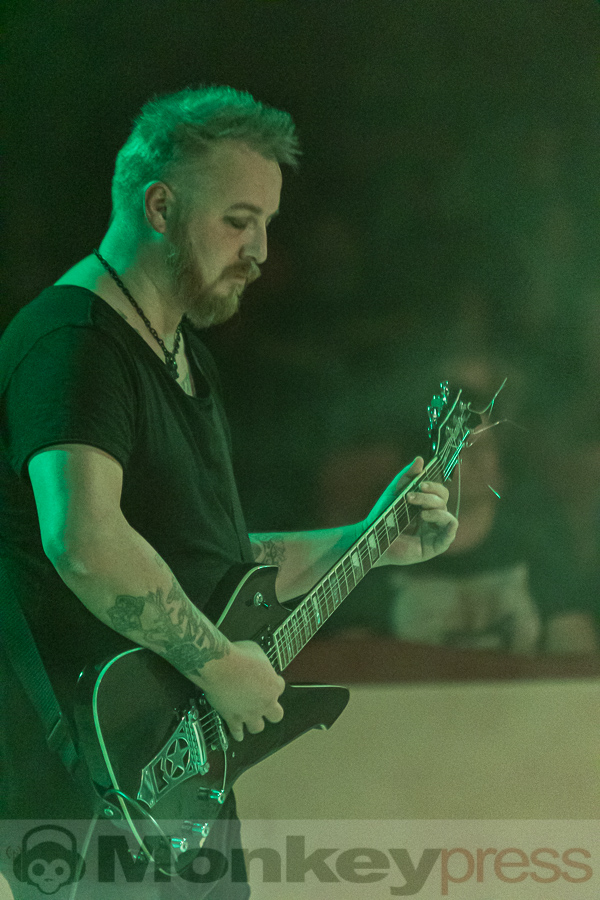 Zunächst durften aber Vlad In Tears aufspielen. 30 Minuten präsentierten Sänger Kris Vlad und seine Mitstreiter an Bass, Gitarre und Drums einen Sound zwischen Dark Rock und Metal, der insbesondere der Stimmfarbe wegen sowohl Fans von HIM als auch von Marilyn Manson ansprechen könnte. Insbesondere der Frontmann war mit seinem fast schon Gothic-Priester-ähnlichen Outfit und dem mit Totenköpfen drapierten Mikrofonständer ein absoluter Blickfang. Das musikalisch Gebotene war grundsolide, die Gruppe zeigte viel Spielfreude. Es gab mehr als nur höflichen Applaus, auch wenn Vlad In Tears musikalisch auf ganz anderen Pfaden unterwegs sind als der Hauptact des Abends. Heldmaschine-Fans konnten sich allerdings schon mal auf das einstellen, was sie auch im kommenden Jahr erwarten wird – denn beide Bands wollen im März 2022 endlich auf gemeinsame Deutschland-Tour gehen, nachdem eben jene kürzlich verschoben werden musste.