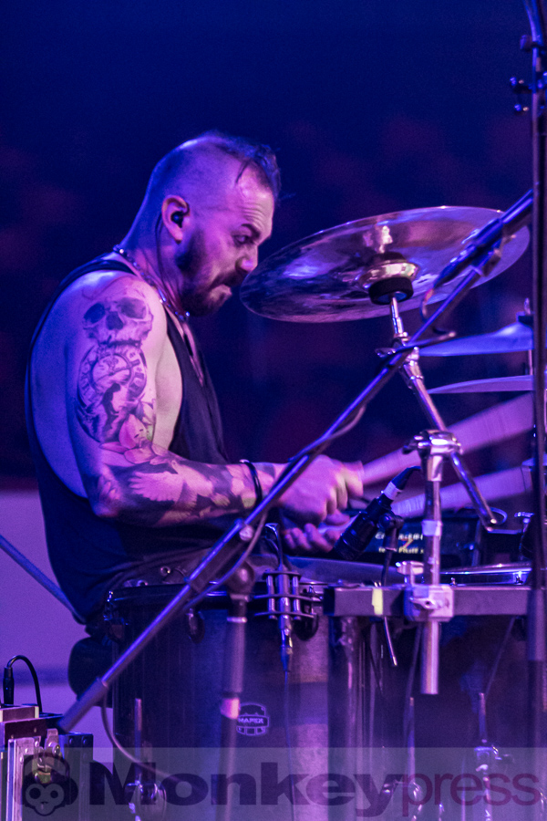 Wer Heldmaschine in erster Linie für ihre Arbeiten als Völkerball kennt, hatte jedenfalls allen Grund, positiv überrascht zu sein. Klar, jegliche Pyrotechnik musste im Zirkus natürlich draußen bleiben, aber neben ihrer Bühnenshow hat die Gruppe auch musikalisch einiges zu bieten. Von einer Rammstein-Kopie war das je nach Song mal mehr, mal weniger weit entfernt, mit ihrem kraftvollen, synthetischen unterstützten Rock rissen Heldmaschine das Publikum absolut mit. Besonders beeindruckend kam die Beziehung zwischen Musikern und Publikum bei Springt! rüber. „So, jetzt testen wir mal die Standfestigkeit der Ränge„, rief Anlauff – und die Fans taten nahezu allesamt wie befohlen. Nein, es gab keine Verletzten und auch das Zelt trug zum Glück keine bleibenden Schäden davon. So endete nach knapp 95 Minuten ein durchweg überzeugender Auftritt ohne jede Längen mit dem mächtigen Weiter!. Und der tosende Jubel im Zelt ließ wohl alle Anwesenden das spüren, was man in den zurückliegenden anderthalb Jahren so sehr vermisst hatte …