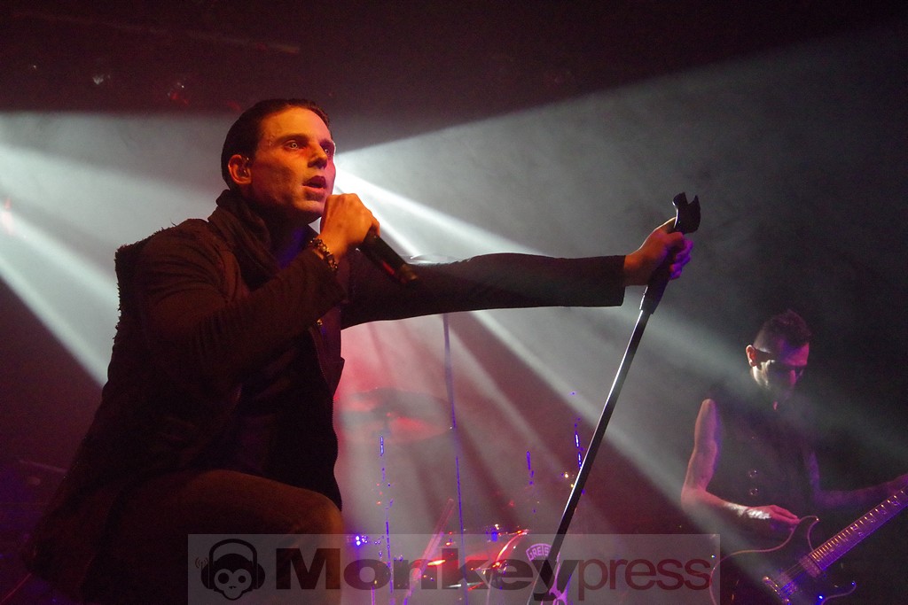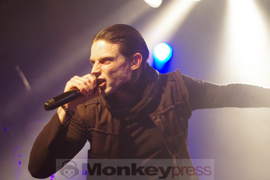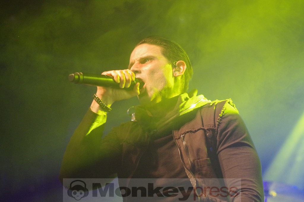 Nachdem man sich zunächst wunderte, wo auf einmal die vielen Leute seien, füllte sich die Halle zum Set von Support-Act Chemical Sweet Kid doch zusehends. Der Hirsch hat eben ein weitläufiges Gelände rund um die eigentliche Konzerthalle. Wuchtig ging es auch gleich los. Die selbstbetitelte „Electro Industrial Metal“-Band sorgte mit Elektronik und verzerrter Gitarre für einen treibenden Sound und heizte vom Opener Lost Paradise an ordentlich ein. Das Trio aus dem französischen Metz spielte einen gut 40-minütigen Querschnitt durch ihr Schaffen und scheute sich dabei nicht, Genre-Grenzen verschwimmen zu lassen, was die selbstgewählte Bezeichnung ihrer Musik schon zeigt. Harte Industrial-Riffs gepaart mit elektronischen Sounds, dazu ein Sänger, der aktiv die Interaktion mit dem Publikum sucht, das konnte sich hören und sehen lassen. Zum Abschluss des Sets gab es mit We’re Not Gonna Take It zudem noch ein Stück, das auch diejenigen kannten, die mit Chemical Sweet Kid bisher keinerlei Berührung hatten und man war angenehm überrascht, wie gut die Twisted Sister-Nummer auch in diesem Gewand klingen kann.