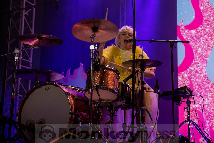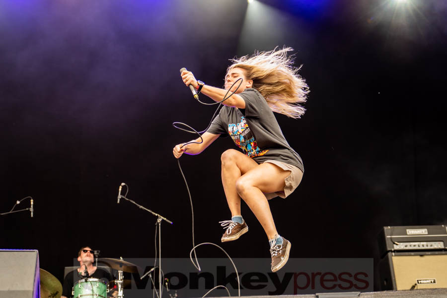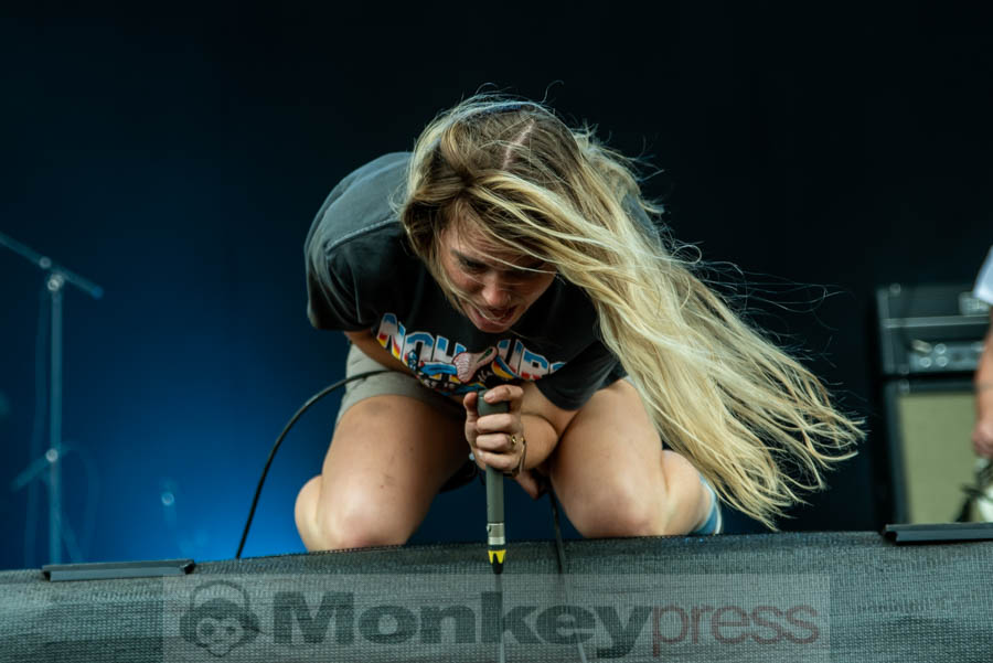 Energiegeladen geht es derweil auf der Mountain Stage los. Press Club aus Australien machen hier keine halben Sachen. “It feels really good to be on the other side of the world” sagt uns Sängerin Natalie Foster, bevor sie selber von der Bühne in das Publikum und den Mosh-Pit springt. Aber auch zurück auf der Bühne ändert sich das Bild nicht. Sie springt hin und her, kriecht über den Boden oder posed auf den Boxen. Für das Auge wird es nicht langweilig und der Sound der Punk-Band sowieso nicht.