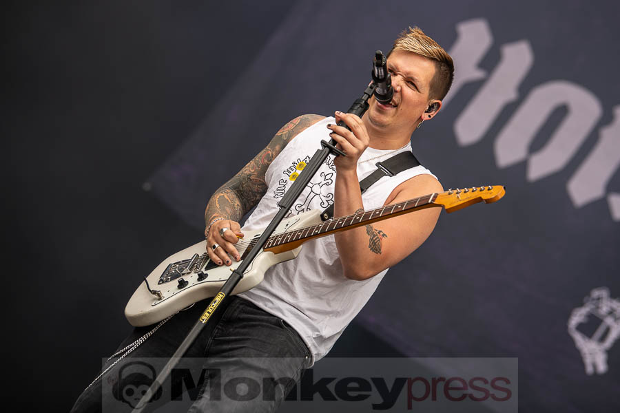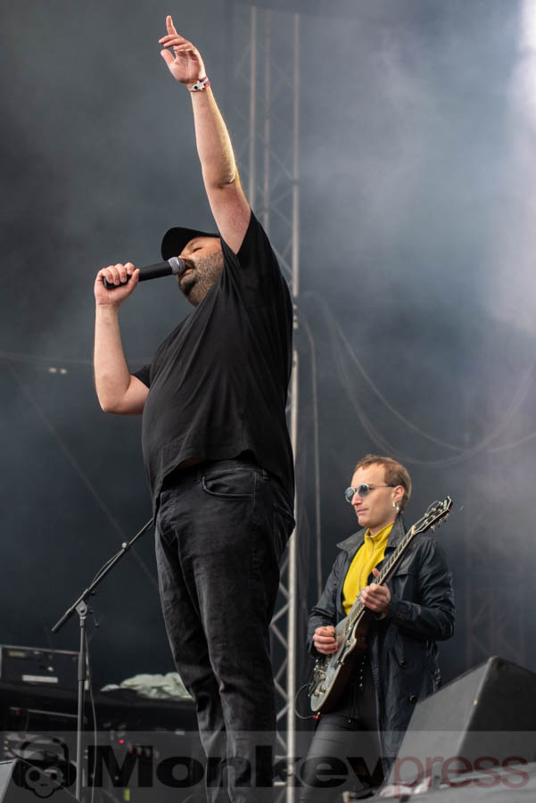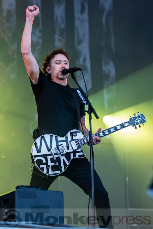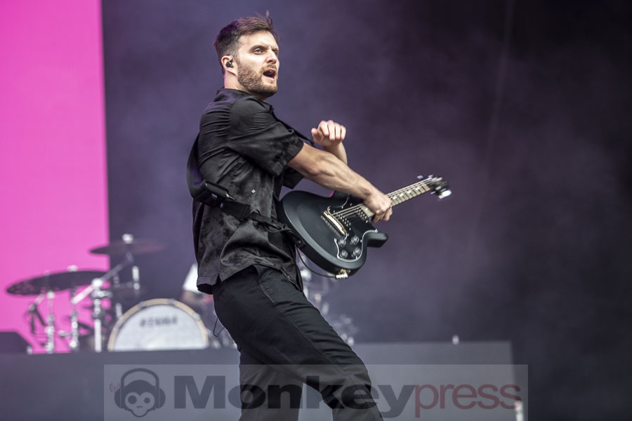 Mit dem Gegenteil von assi, aber nicht weniger rockig geht es weiter im Programm: Royal Blood haben ordentlich Wucht hinter ihren Songs und zugleich richtig Bock, mal wieder live zu spielen. 2021 haben die Jungs aus Brighton ein neues Album rausgebracht und bisher noch nicht live präsentieren können – das ändert sich heute. Und siehe da – die Fans hatten lang genug Zeit, die Texte auswendig zu lernen und lautstark mitzusingen. Heute ist es zum Glück nicht ganz so heiß und auch der allgegenwärtige Staub wurde durch die kurzen Regengüsse zumindest etwas gebunden, sodass einer ordentlichen Party nichts im Wege steht.