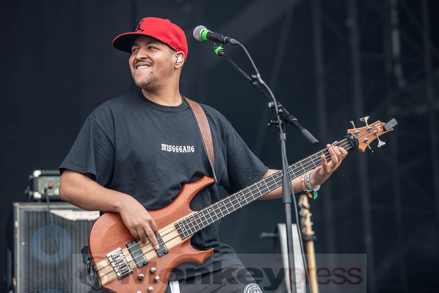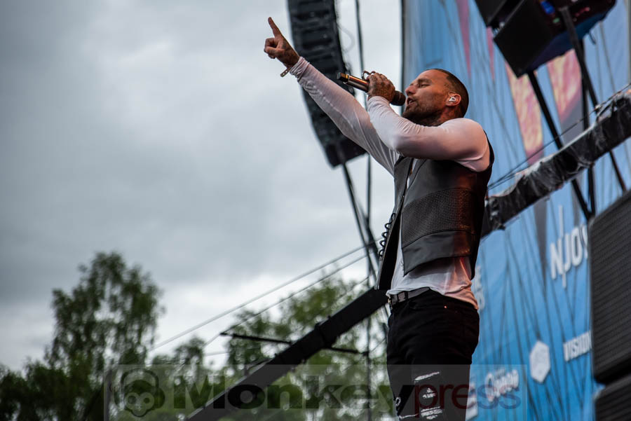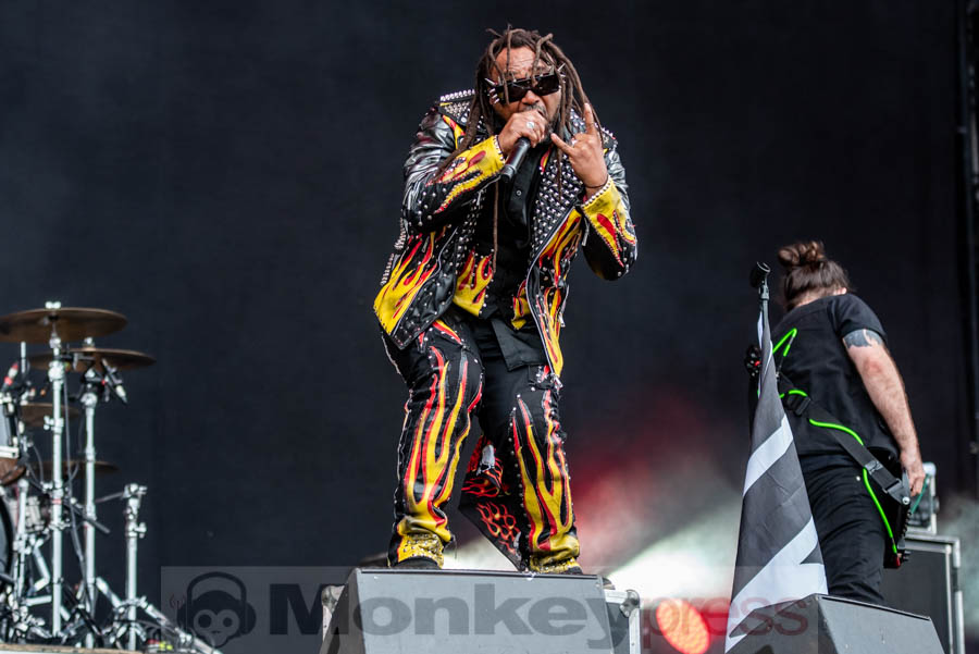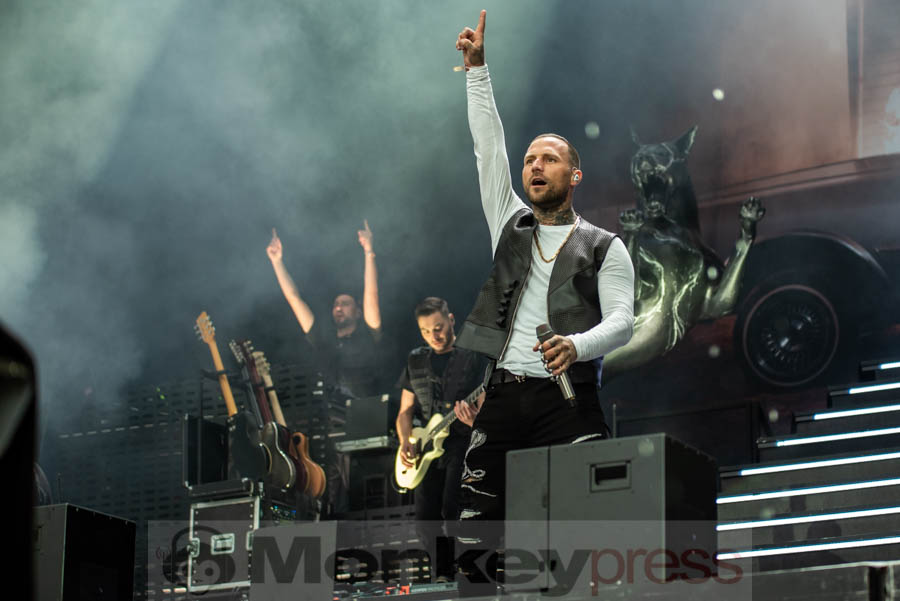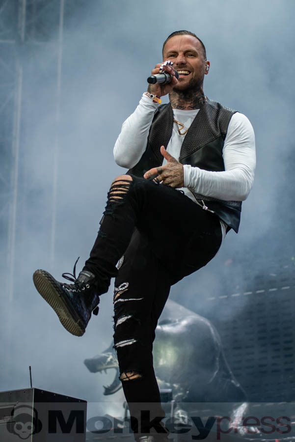 Wenn eine Band für gute Laune steht, dann ist es Skindred. Es gibt kein Konzert, bei dem die Band nicht allen Beteiligten ein breites Grinsen ins Gesicht zaubert, so auch heute. Der unverkennbare Sound der Band aus Metal und Reggae zwingt einem zumindest, mit dem Fuß im Takt zu wackeln, während der Humor von Sänger Benji Webbe den Rest erledigt. “Does anybody want a T-shirt? – 25 fucking euros you greedy fuckers”, sagt er uns beispielsweise, bevor er uns wieder springen sehen will. Immer wieder fallen vereinzelte Regentropfen, interessieren tun diese aber noch niemanden. “Think of some asshole, put them in your hand and raise it up. Could be your mother, your fucking sister or fucking Putin. Together we can crush them”, erzählt uns Benji, während er Kill the Power anstimmt und damit langsam das Ende des Konzerts eingeläutet.