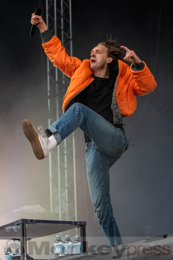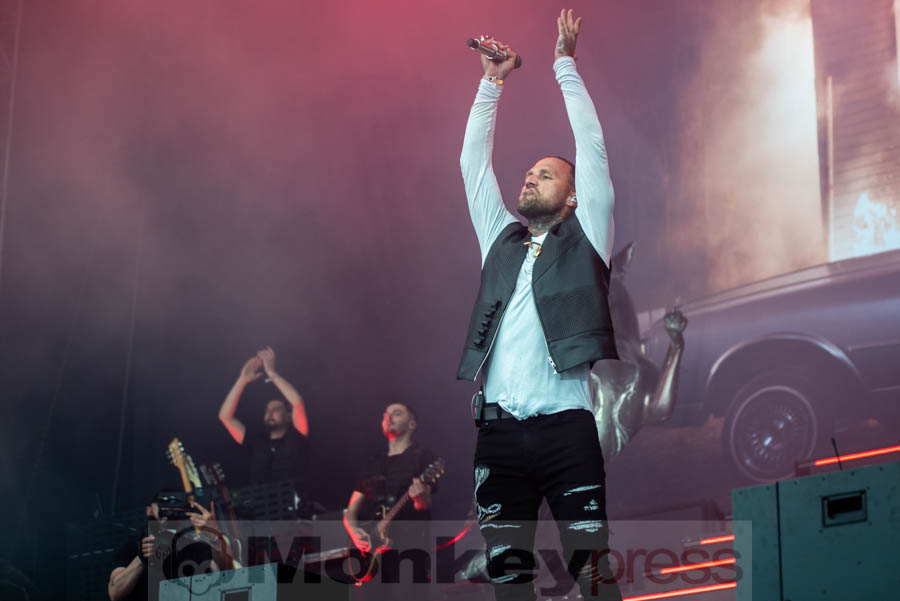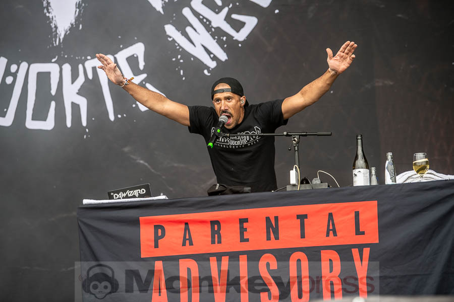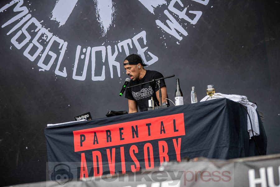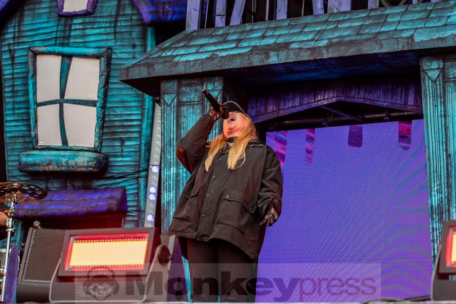 Auf der River Stage geht es langsam Richtung Finale. Mit Kontra K steht einer der letzten Künstler auf der Bühne – oder besser gesagt im Regen. Kurz vor Beginn des Konzertes kommt ein etwas größerer Schauer runter, der die Fans aber nur herzlich wenig interessiert – inklusive Kontra K selbst. “Sieht nass da unten aus, ich komm gleich runter, dann werden wir zusammen nass” sagt er zu Beginn des Konzerts und springt anschließend immer wieder auf den vorderen Teil der Bühne, welcher nicht komplett überdacht ist. Ganz ins Publikum springt er jedoch nicht, anders als sein Kumpel im Michael Myers-Kostüm. Dieser wird dem Publikum zum Moshen ausgeliehen, aber erst nachdem sie dies zu Warnung zusammen auf der Bühne tun. Hier gibt es auch ein bisschen Pyro zusätzlich. Dabei wird gespaßt, dass er die Handynummer von Kontra K hat, wir ihn also richtig hart ran nehmen sollen. Wirklich hat diese aber nur der Grafiker von ihm, wie er uns lachend erzählt. ”Geh in den Pit, Bro”, sagt er. Genau konnte er aber (zum Glück?) nicht identifiziert werden.