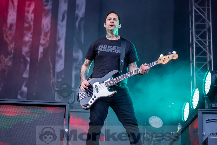 Finale auf der River Stage, diesmal mit keinem Geringeren als Rise Against. Wenn man einen Blick ins Publikum wirft sieht man, dass die Band so einige Teenager in ihrem Leben begleitet hat. Deutlich wird dies auch direkt beim ersten Song Prayer of the Refugee. lautes Mitsingen ist hier so selbstverständlich wie der Staub im Pit. Beides sollte nicht mehr enden, solange noch Musik aus den Boxen ertönt. Generell finden sich viele alte Songs im Set wieder, was die Fans extra freut. Eine große Show gibt es nicht, braucht es aber auch nicht. Alle Musiker haben einen Bewegungsradius von wenigen Metern, aber die Musik alleine reicht, um dem Publikum Feuer unter dem Hintern zu machen. “Today feels like a celebration” sagt Sänger Tim McIlrath. Es ist ihr erstes Mal auf dem Hurricane und sie seien sehr glücklich, heute hier auf der Bühne einen Headliner-Slot zu spielen. Neben der Musik kommen aber auch Ansagen nicht zu kurz. So spricht sich Tim immer wieder gegen Homophobie, Rassismus und Krieg aus. So gibt es einen lauten Chor zu Make it stop und Hero of war in der Akustik-Version wird dem Krieg in der Ukraine gewidmet. Das Konzert über gibt es immer mal wieder kleine Pyroeinlagen, zum letzten Song Savior gibt es jedoch noch ein großes, abschließendes Höhenfeuerwerk. Es mag zwar das erste Mal für die Band auf dem Festival gewesen sein, aber hoffentlich nicht das letzte.