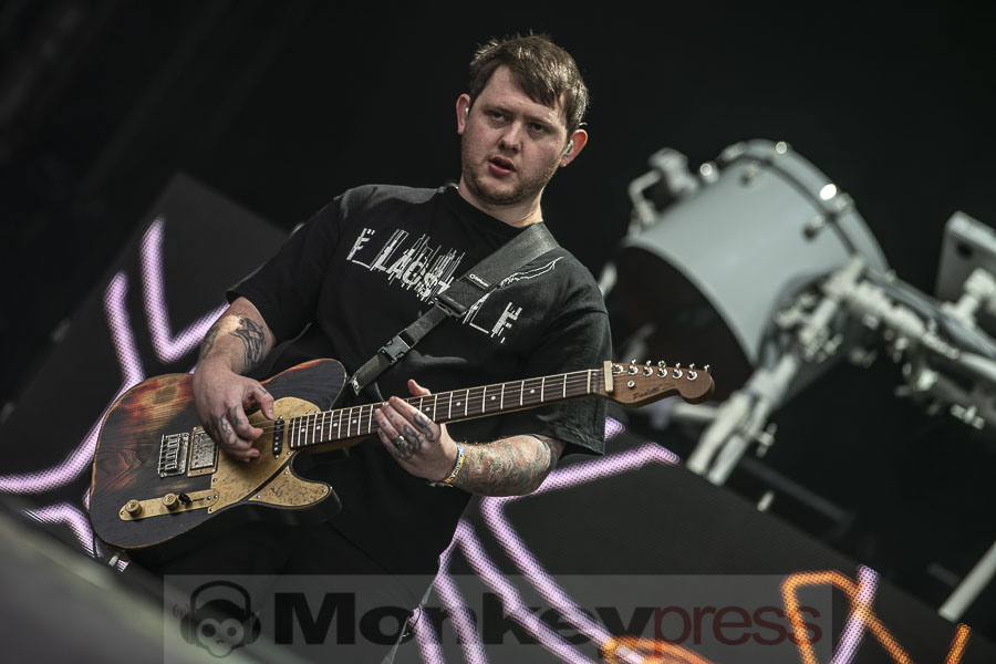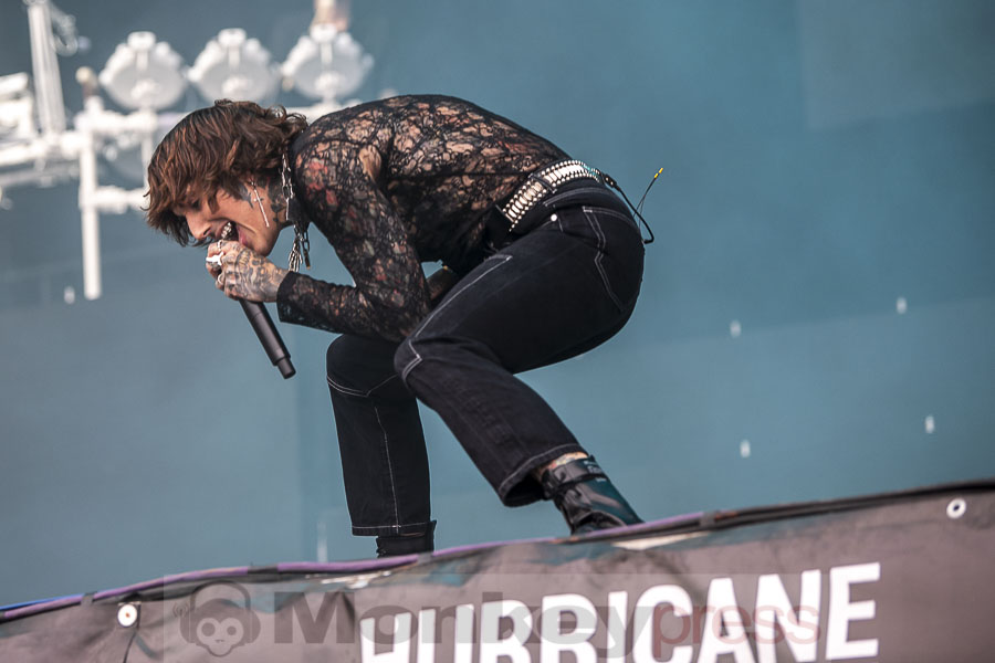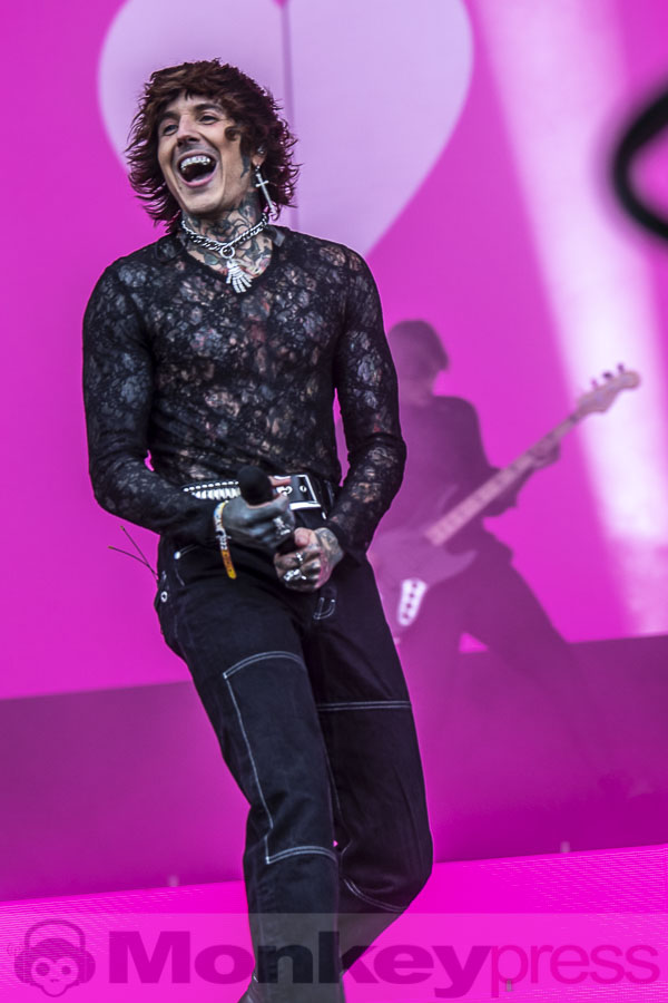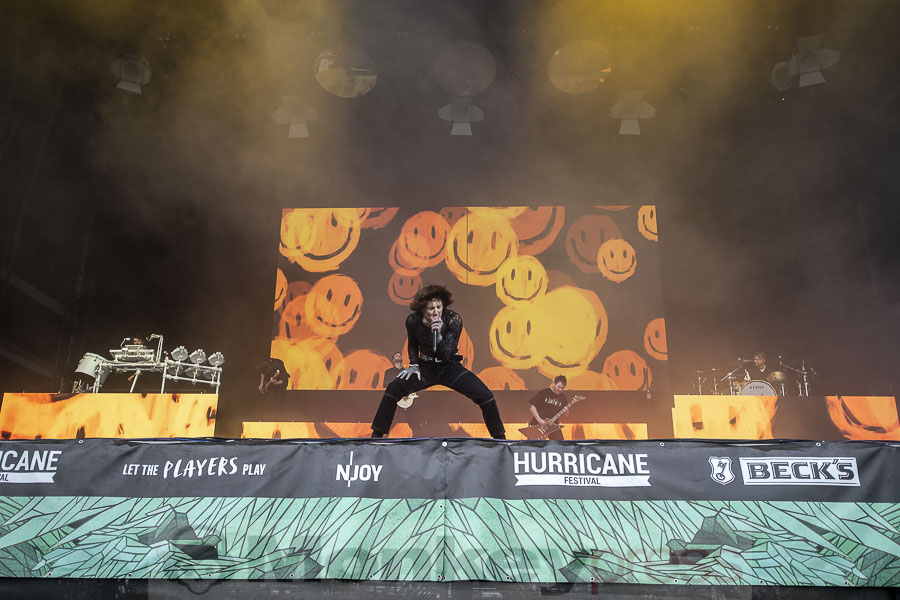 Nun muss ich doch etwas persönlicher werden, denn mit Bring Me The Horizon stehen nun eine meiner absoluten Lieblingsbands auf der Bühne. Nein, ich bin keins dieser Oli-die-hard-Fan Girls, aber ich kann mich in deren Musik einfach absolut verlieren und ich hatte tatsächlich bisher, seit dem ich diese Band für mich entdeckt hatte, noch nicht so oft die Gelegenheit, sie live zu erleben. Als dann die eigentlich fürs Frühjahr angekündigte Tour auf 2023 verschoben wurde, war ich umso glücklicher, dass dann doch die Entscheidung fiel, aufs Hurricane zu fahren und sich damit dann die Möglichkeit ergab, Bring Me The Horizon live zu erleben. Und ja – ich habe dafür sogar die Chance abgegeben, Rise Against zu fotografieren und das will schon was heißen. Nun, da stand ich also im Fotograben und als die ersten Töne von Can you feel my heart erklangen, fing ich wie von selbst im Graben an zu tanzen und danach lautstark mitzusingen. Wie ihr sehen könnt: Fotos machen kann ich trotzdem. Nach zwei Songs im Graben gings für mich direkt weiter in den ersten Wellenbrecher. Egal ob Songs von DER Metalcore-Platte schlechthin – Sempiternal – vom neusten Album Amo oder der aktuellen EP Post Human Survivor Horror – der Pit wurde gefühlt, wenn überhaupt, größer oder es entstanden einfach neue. Oli hatte die Menge von vornherein voll im Griff und war immer wieder verwundert, wie “crazy” wir Deutschen doch sind – das hatte er scheinbar in den letzten zwei Jahren vergessen. “I want to give everyone a hug – or a high five – or whatever”. Gesagt, getan: Zu Crown kletterte Oli in den Graben und verbrachte den kompletten Song damit, mit den Fans auf Tuchfühlung zu gehen. Eigens dafür sah man die ersten (und vermutlich einzigen) Crowdsurfer des Tages, die sich extra nach vorn tragen ließen, um von Oli ein High Five oder eine Umarmung zu bekommen – und ausnahmslos jeder bekam etwas – egal ob man eher am Rand oder in der Mitte vor der Bühne stand – in aller Seelenruhe klapperte Oli sämtliche Fans ab, die er erreichen konnte. Man könnte jetzt meckern, dass ein Teil der Stimme auf jeden Fall Playback war – wenn man jedoch auf die Geschichte der Band zurückblickt, gibt es dafür eine vernünftige Erklärung und ich bin froh, die Band noch live erleben zu können, wenn auch mit weniger Screams als früher. Ohne jetzt Kings of Leon schlecht machen zu wollen: Hier stand gerade der heimliche Headliner des Tages auf der Forest Stage – man konnte dem Publikum ansehen, dass das nicht nur meine Meinung war.