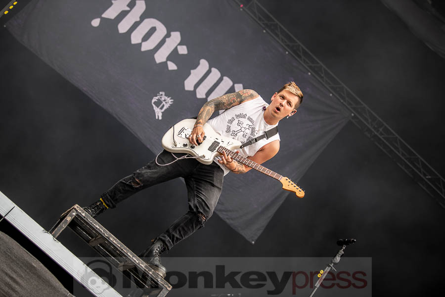 Gleiches kann man auch über die direkt im Anschluss spielende Band auf der River Stage sagen. Bei Hot Milk geht der Sound in eine ähnliche Kerbe, nur gibt es hier eine weibliche und männliche Stimme. Beide harmonieren perfekt und die Gitarren beider spiegeln sich nicht auf deren Bewegungsradius wider. Immer wieder wird gelaufen, weiter animiert und viel geposed. Davon kann sich so manch größere Band gerne nochmal eine Scheibe abschneiden.