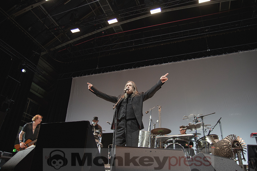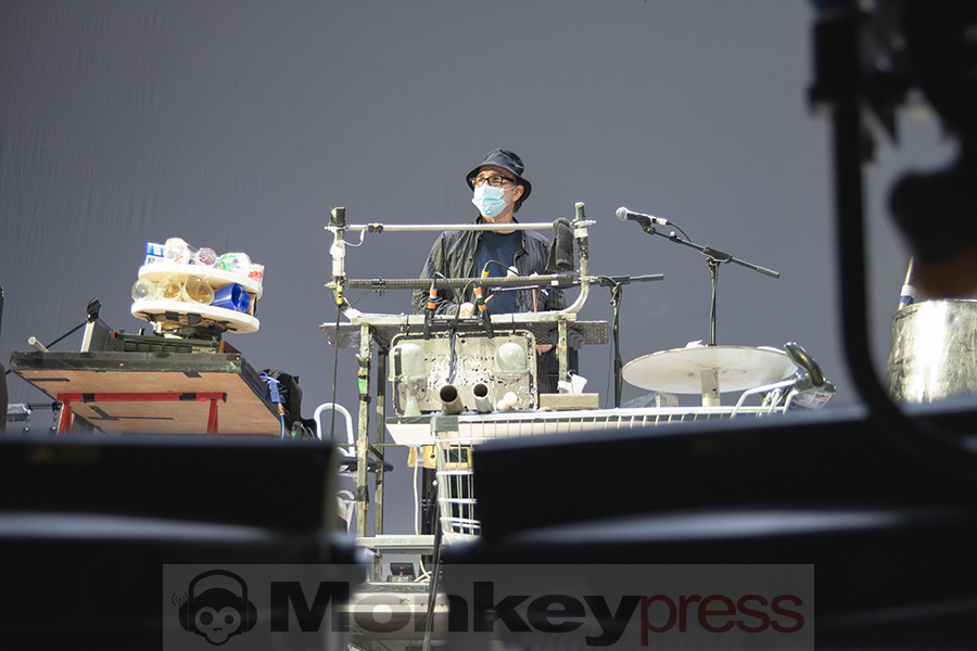 Natürlich blieb es aber bei dieser kurzen A-cappella-Einlage, denn wie bereits beschrieben sind die Neubauten-Klassiker längst im Konzert-Giftschrank verstaut worden. Stattdessen endete der Auftritt mit Let’s Do It A Dada, bei dessen Spoken-Word-Zwischenpart N.U. Unruh mit schlohweißer, schon fast Papst-ähnlicher Maskerade für weitere Lacher sorgte. Über beinahe zwei Stunden bewegt die Gruppe die Töne zum Kribbeln, Vibrieren, Zischen, Hauchen, Ächzen, Kratzen, Quietschen. Die Klänge brodeln, es hallt und hämmert, klirrt, wirbelt und wabert, donnert und flimmert, flirrt und summt. Der Besuch eines Einstürzende Neubauten-Konzerts ist immer noch etwas Besonderes, die Performances versprühen weiterhin einen einzigartigen Vibe – nur dass eben im wahrsten Sinne des Wortes leisere Töne angeschlagen werden. Beseelt von den avantgardistisch-experimentellen Klangsphären applaudiert das Publikum – und bewegt sich in Richtung der nächsten lauen Sommernacht.