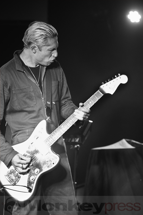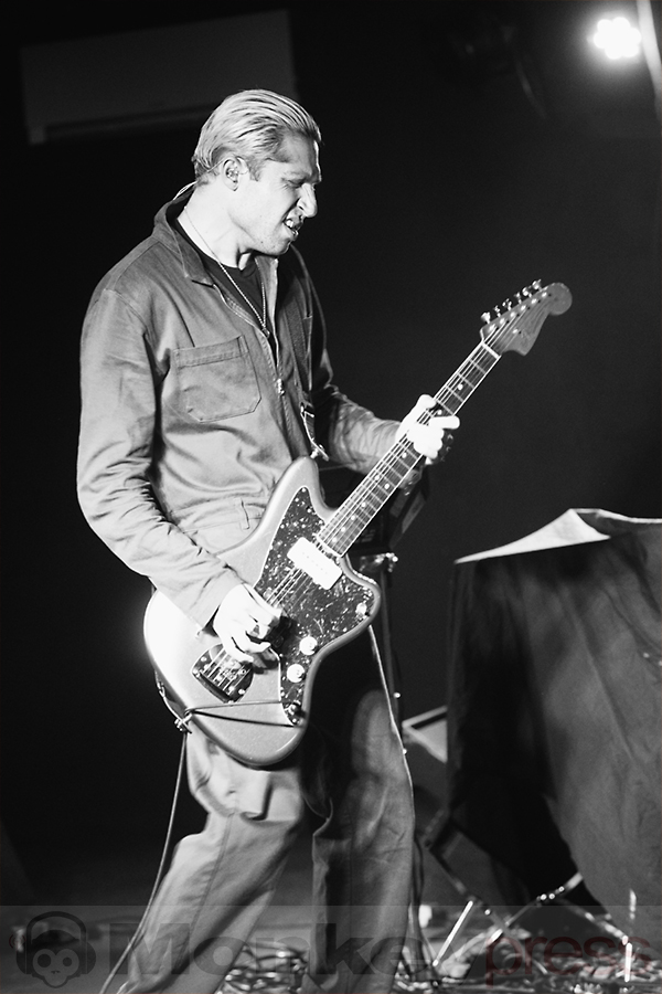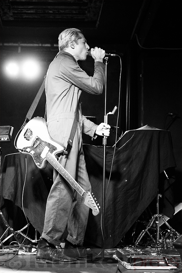 Ein Abend aus der Kategorie „Lass doch mal auf ein Konzert gehen, weil’s ja noch nicht warm genug ist“: Drückende 29 Grad zeigte das Thermometer an diesem Montag in Köln an. Wer gegen 20 Uhr von draußen ins traditionell enge und eher mäßig belüftete Luxor reinkam, für den fühlte es sich aber eher wie 39-49 Grad an. Gut, dass der Support-Act der Blood Red Shoes für entspannt-sommerliche Sounds sorgte. Michael Shuman alias Mikey Shoes alias Glu ist eigentlich größere Venues gewöhnt – er spielt bei Queens Of The Stone Age die zweite Gitarre. Sein Soloprojekt mischt Funk-Rock mit lässigen Grooves, Sprechgesang und dem einen oder anderen mächtig verzerrten Riff beziehungsweise Solo. Das hätte heutzutage, wo Solomusiker mit Gitarre angesagter sind denn je, sicher auch im Mainstream Erfolgschancen. Da Shuman sein Geld aber sicherlich vor allem bei QOTSA verdient, scheint Glu ein lockerer Nebenzeitvertreib zu sein, der einfach Spaß macht. Dafür gab es höflichen Applaus der einigen Hundert Fans – wenngleich die definitiv für härtere Töne und mehr Tanzbarkeit anwesend waren.