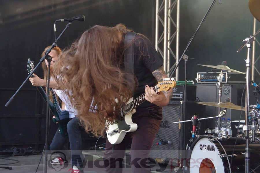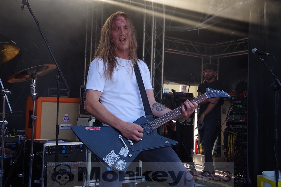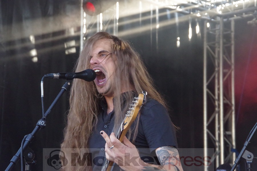 Nach dem Einlass füllte sich der Platz zusehends, die Vorfreude war zu spüren und auch Dust Bolt als Support-Act konnten davon profitieren. In der Abendsonne betrat das Quartett die Bühne und servierte dem Publikum direkt mit The Fourth Strike ein ordentliches Thrash-Brett. Der Einstieg war gelungen und wurde auch vom Publikum entsprechend goutiert, sodass nicht nur auf der Bühne mit den Haaren geschüttelt wurde, sondern auch davor. Stücke wie Awake the riot hielten das Tempo hoch, lieferten eine ordentliche Härte ab und ließen einen mitgehen. Die Band spielte dabei einen guten Querschnitt durch die bisherigen Veröffentlichungen, zeigte Freude am Riff und demonstrierte gut ihr Können an den Instrumenten, womit sie den Nerv des anwesenden Publikums spürbar trafen. Denn: Wer als Vorband 55 Minuten spielen kann und dabei immer noch bejubelt wird, hat definitiv etwas richtig gemacht!